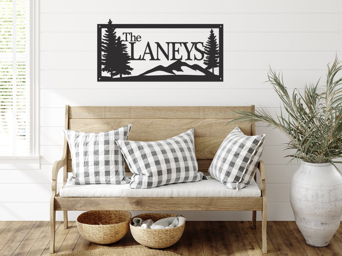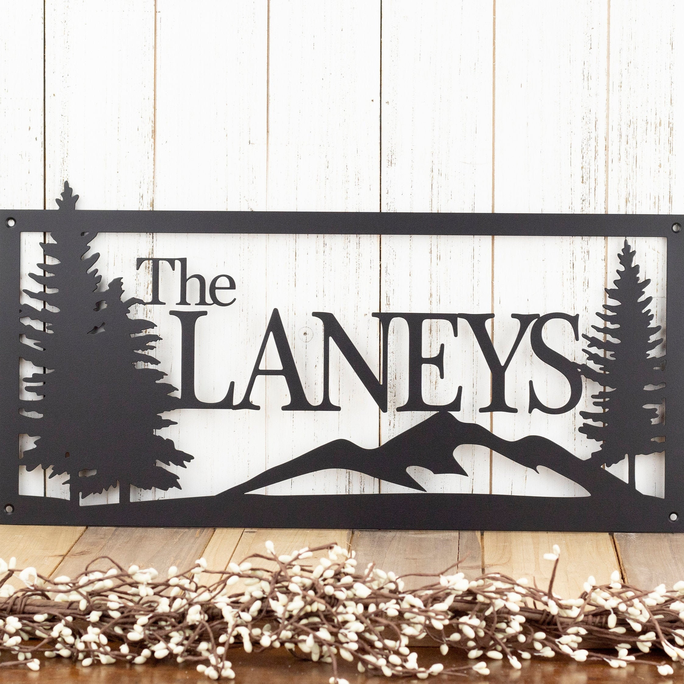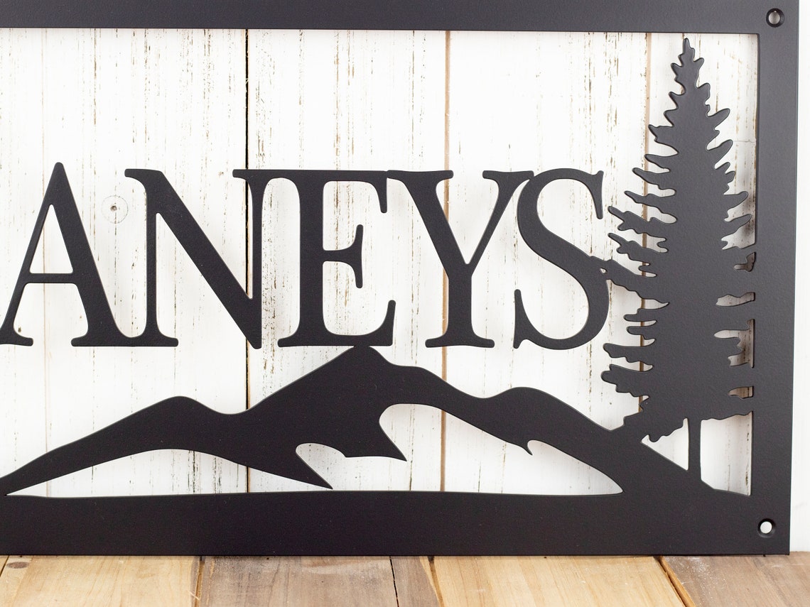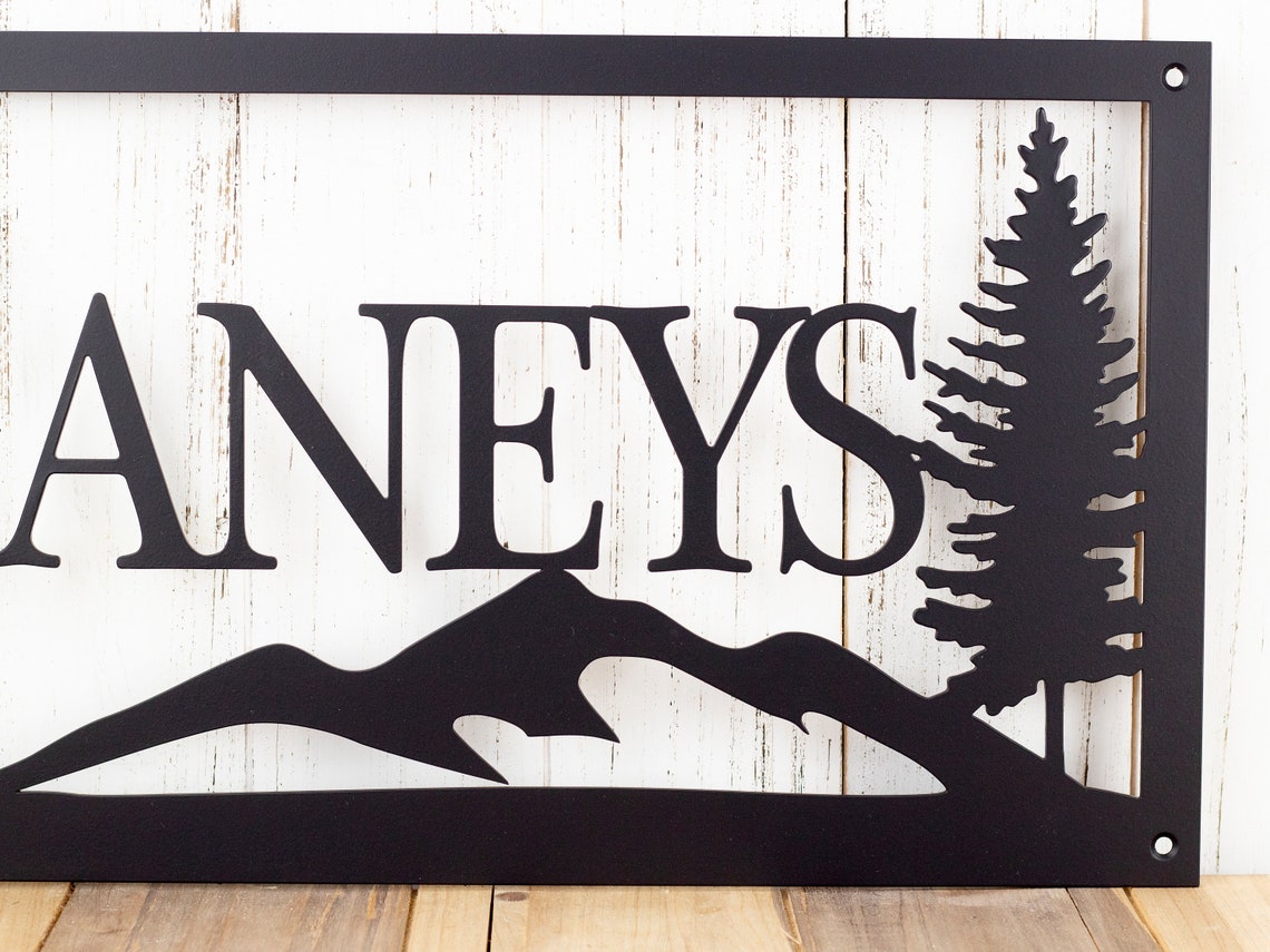 Personalized Custom Mountain Tree Name Metal Art Sign