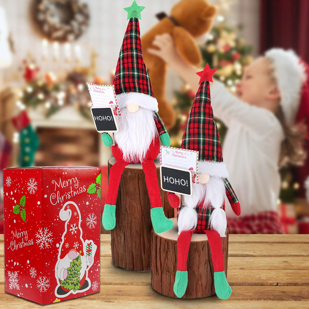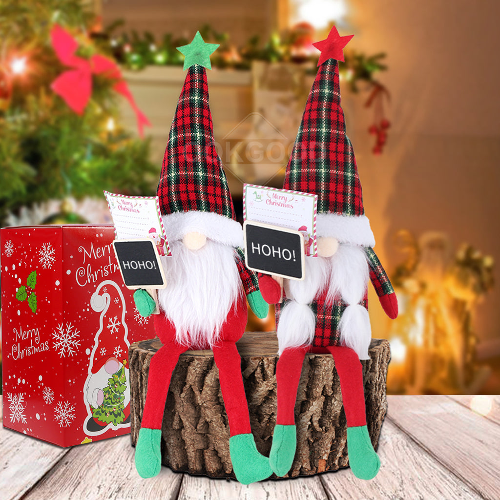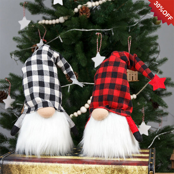 Plush Gnome Elf With Plaid Hat For Christmas Gift And Decoration