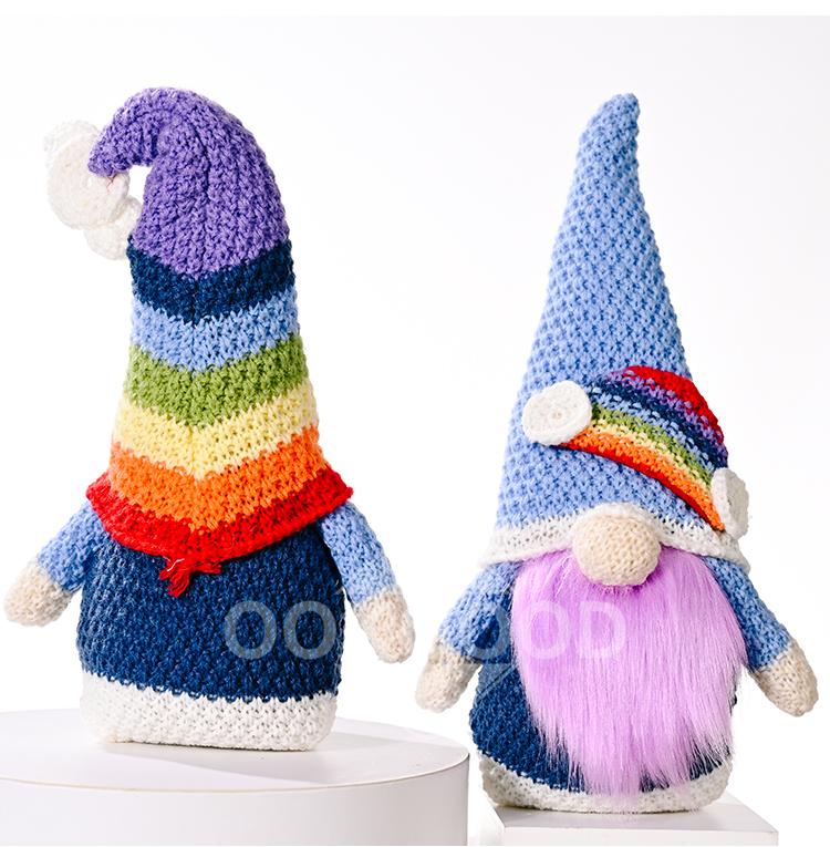 Hand-knitted Plush Rainbow Gnome For Holiday Gift And Decoration