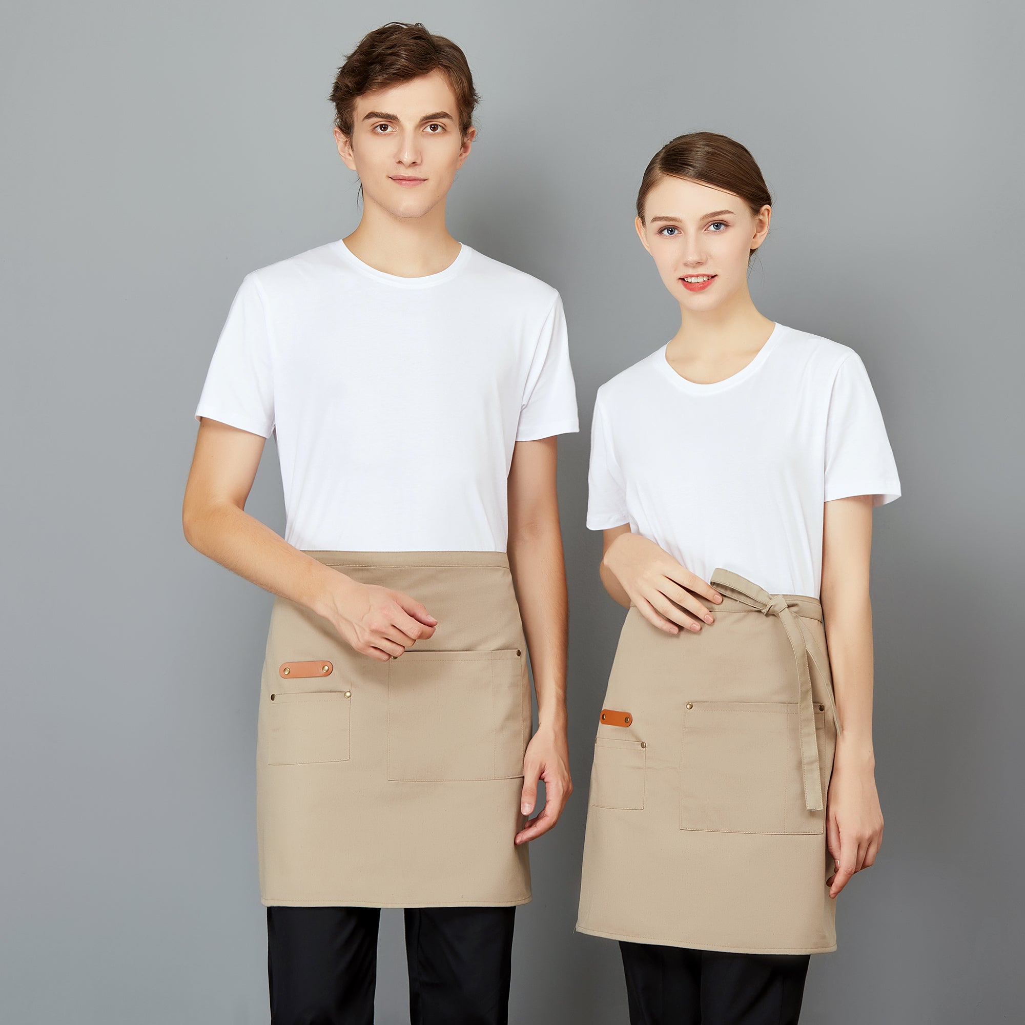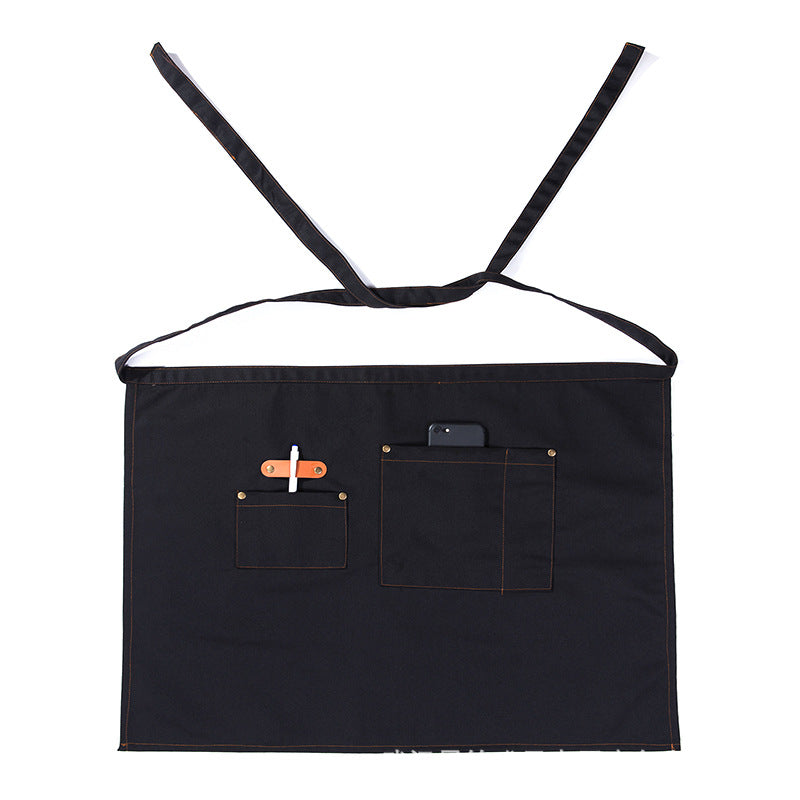 This apron has a thick thickness, no elasticity, good fabric fastness, strong abrasion resistance, multi-purpose pockets, and machine washable. Very stylish, very suitable for cafes and Bars.