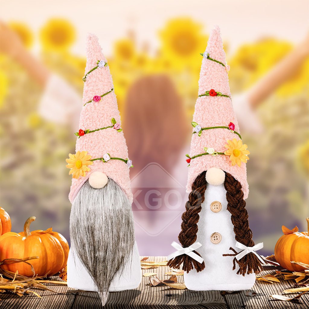 Yellow Plush Gnome Doll Wearing Daisy Hat