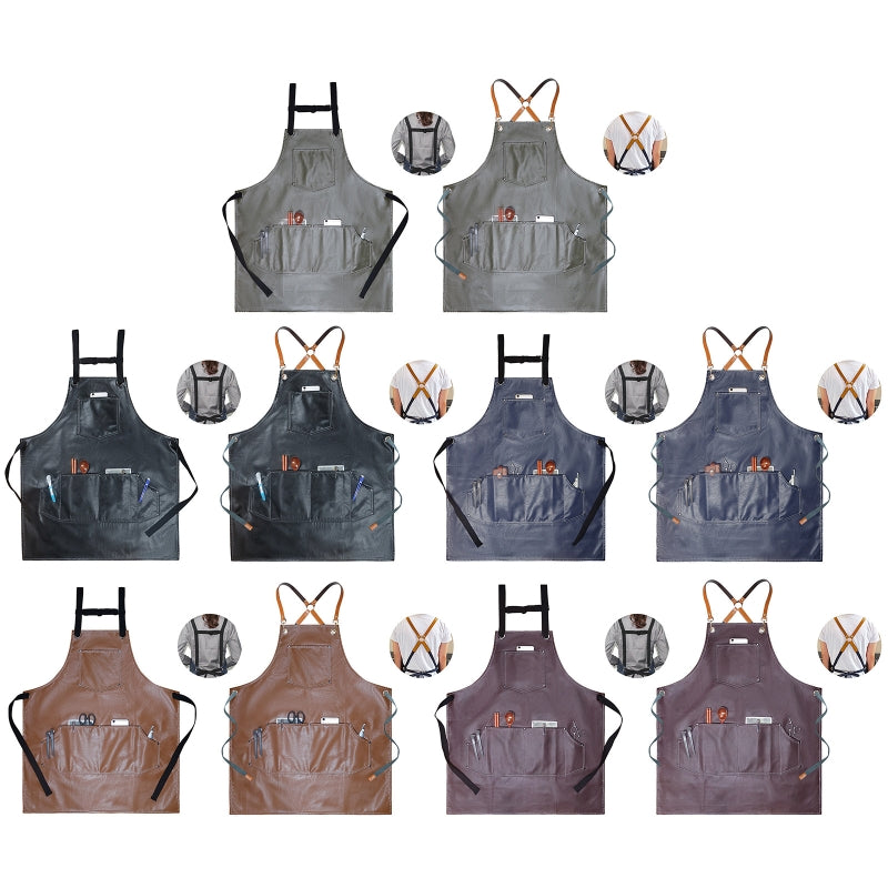Leather PU Cook Apron Barista Bartender Chef Hairdressing Apron