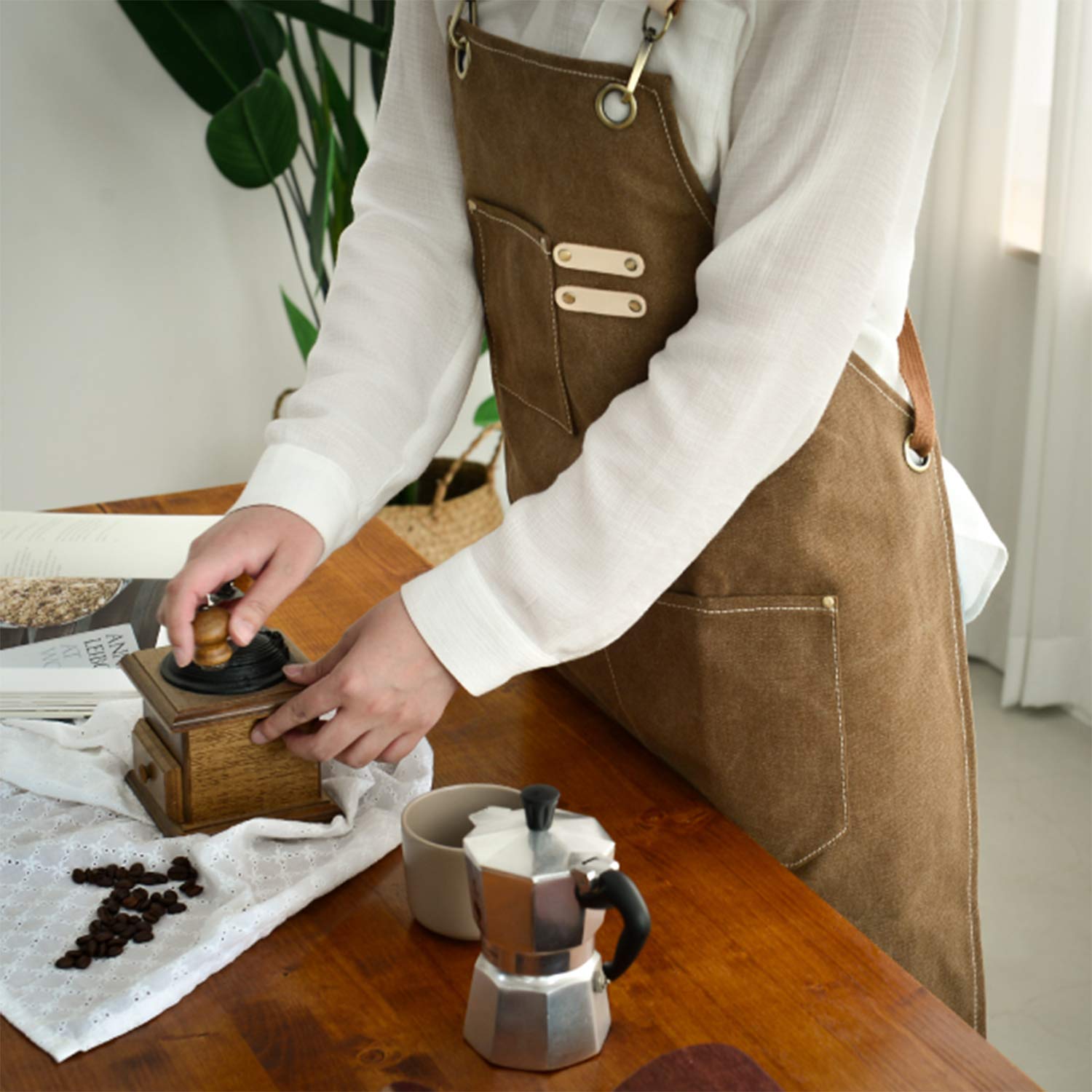 Canvas Work Apron With Adjustable Cross Back For Various Occasions