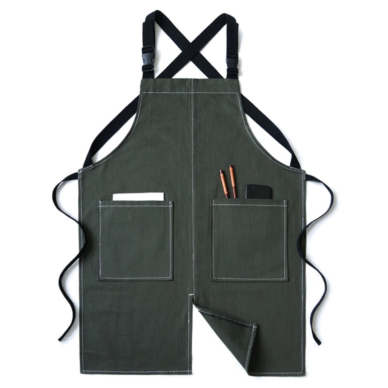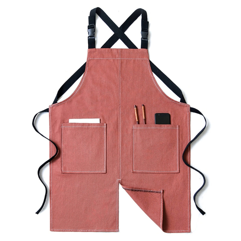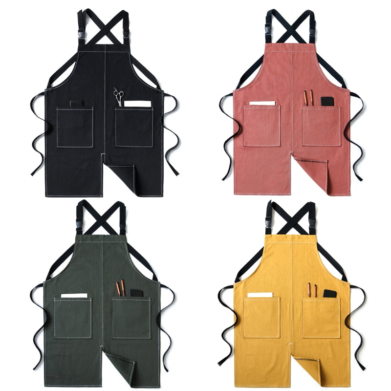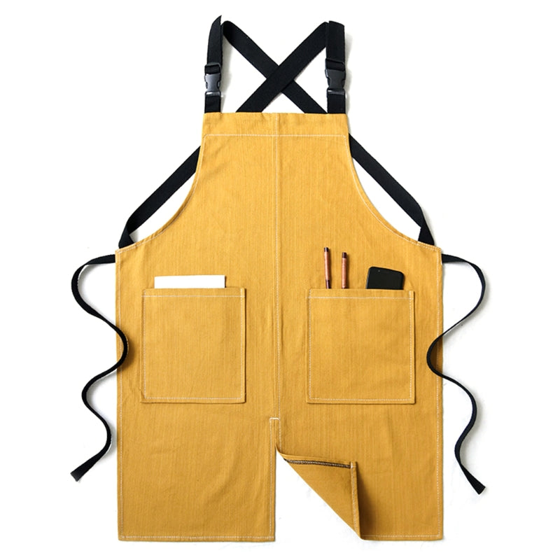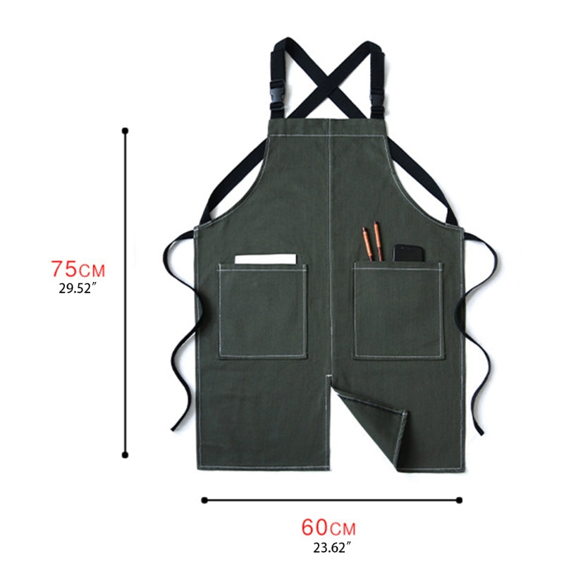 Canvas Denim Apron Cross Back Adjustable Chef Apron Multi-pocket