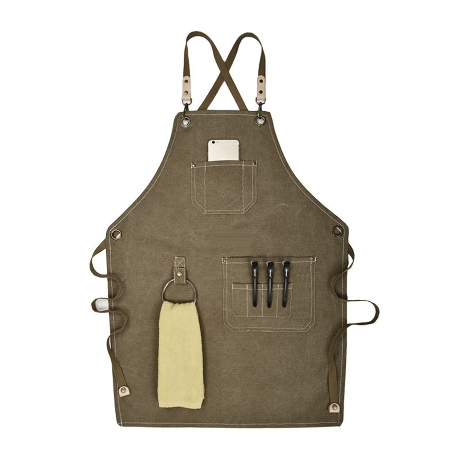 Adjustable Cotton Canvas Apron with Pockets & Loop