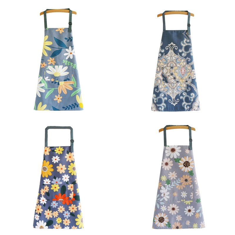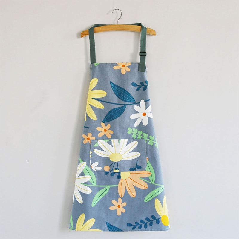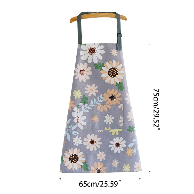 Floral Apron With Pockets For Women BBQ Cooking Drawing