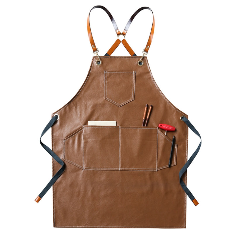Features: Leather Sleeveless Apron, Multi-pocket Sleeveless Apron, Cooking Baking Bib Apron