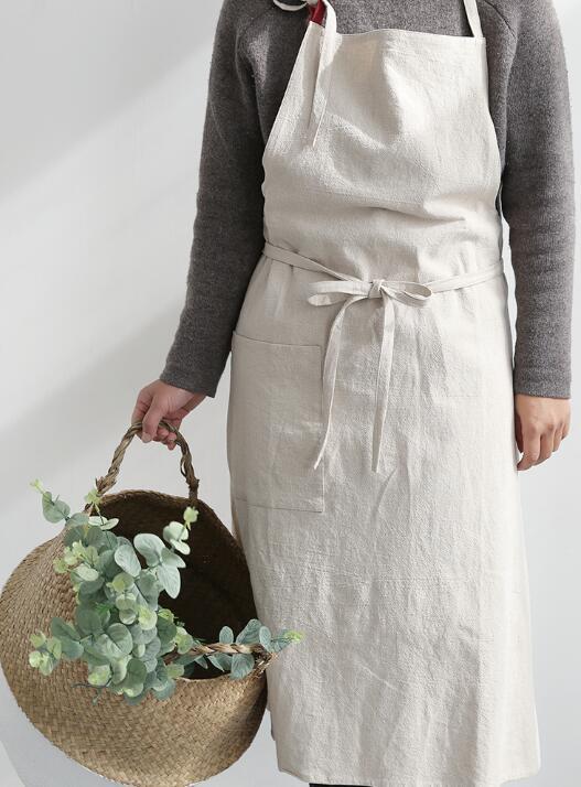HANDMADE WITH CARE FOR YOUR COMFORT. These aprons for women and men are extremely durable and designed to be used for many years. Featuring a twin section front pocket, this linen apron fits in well with any activity: use the pocket to hold any item and carry on with your work.