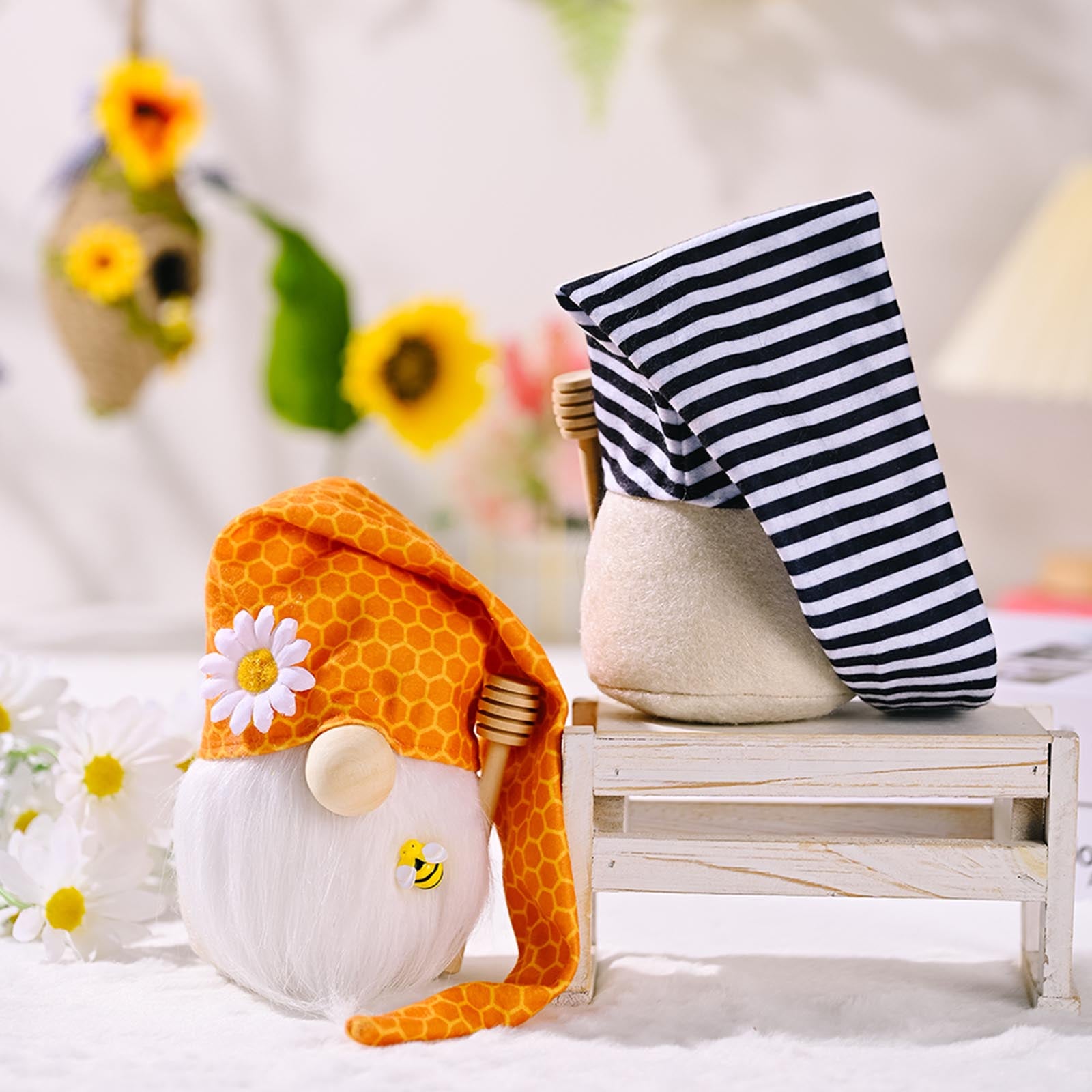 🎁Fully handmade by quality materials- The body is made of soft felt fabric. The beard is made of white faux fur. In addition, this spring gnome is decorated with flowers and cute little bees.