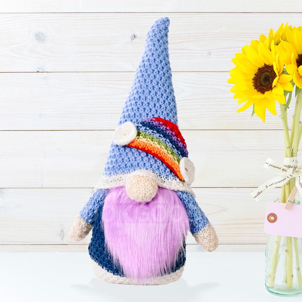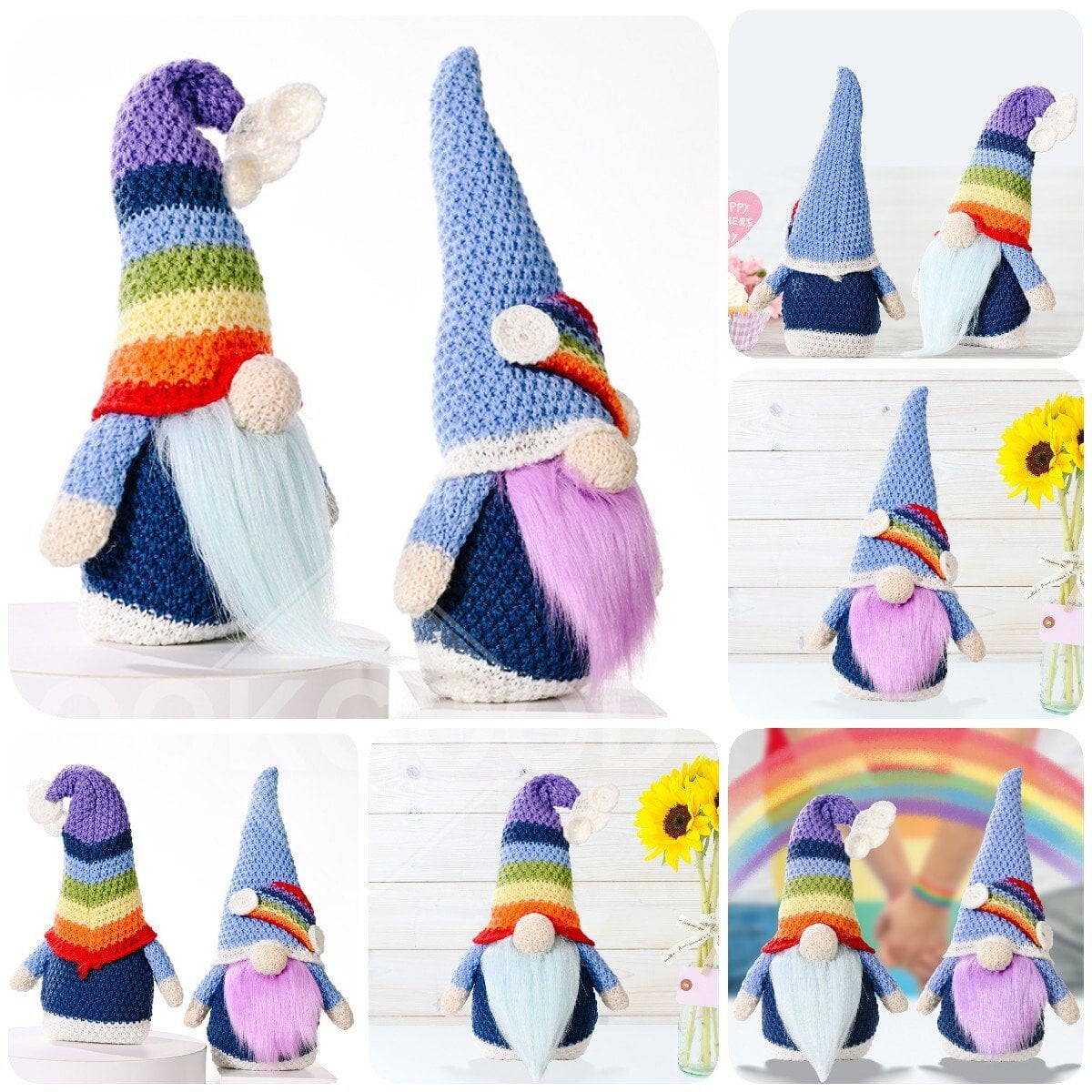 🌈PREMIUM HANDMADE QUALITY- This bearded little gnome features a colorful stripes hat, white faux fur beard, knitted nose and rainbow style knitted cap. The hat has a wire tucked inside so that the position is changeable as you wish.