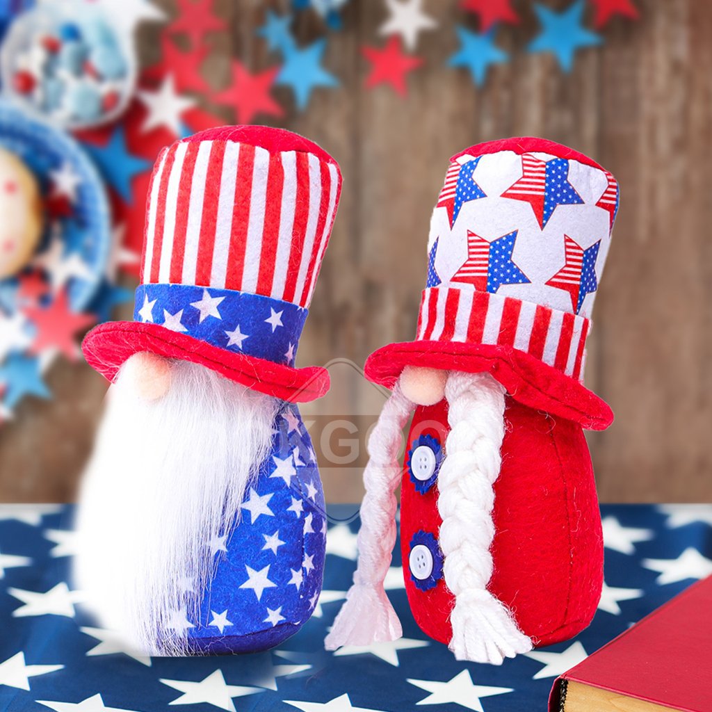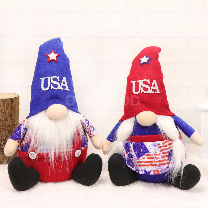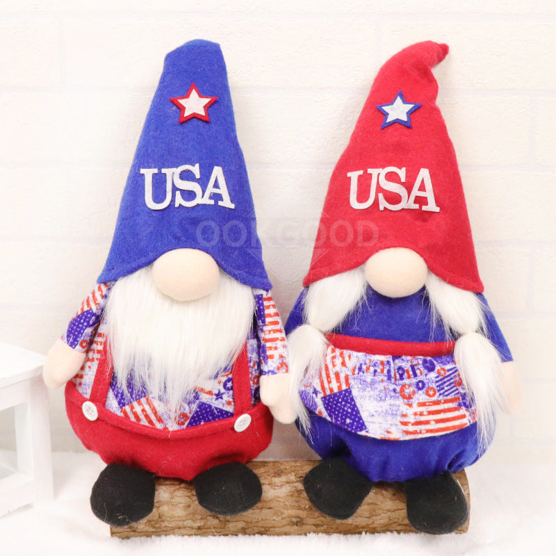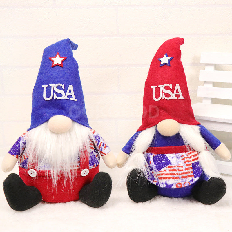 Handmade Plush Gnome Ornament For Independence Day Decoration