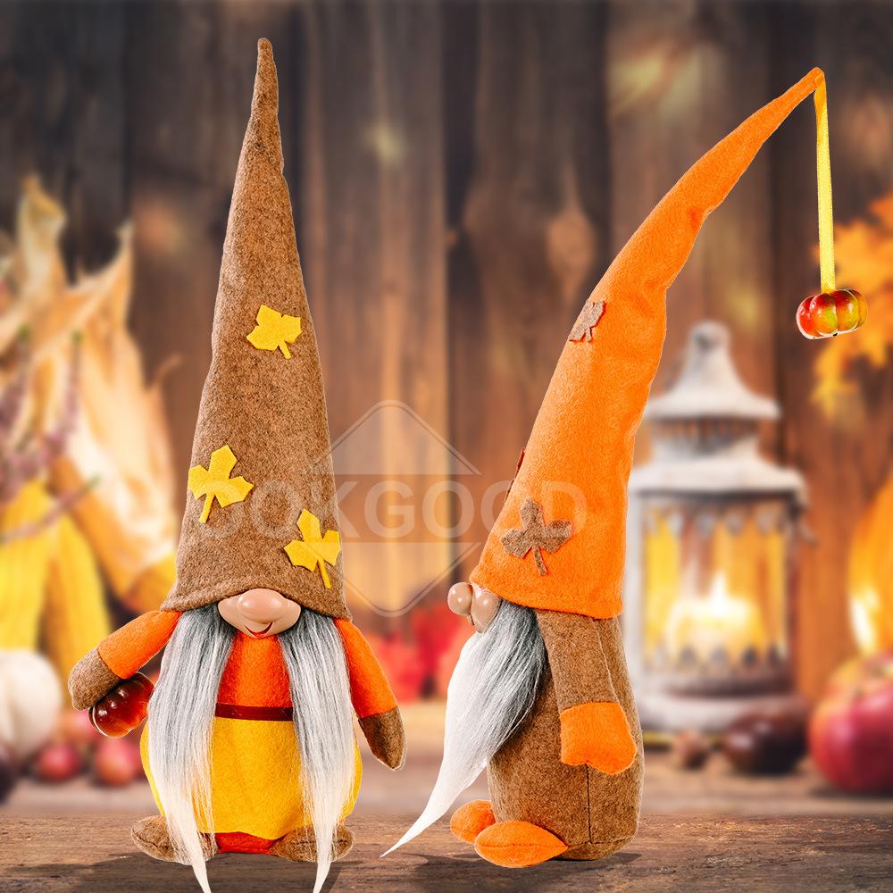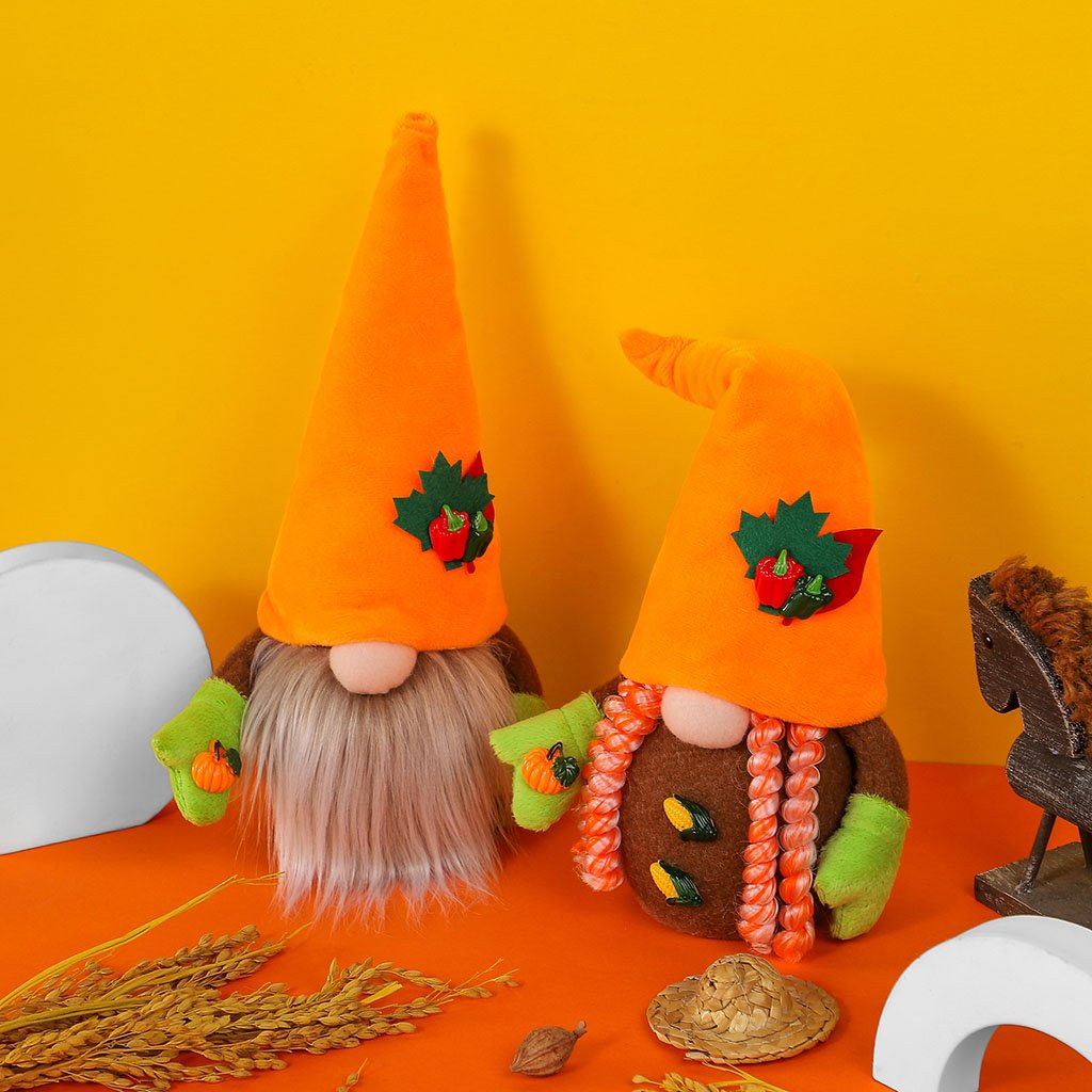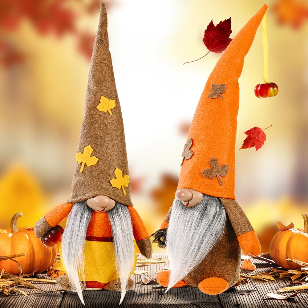 Plush Gnome Couple With Maple Leaf Hat For Thanksgiving Day Gift