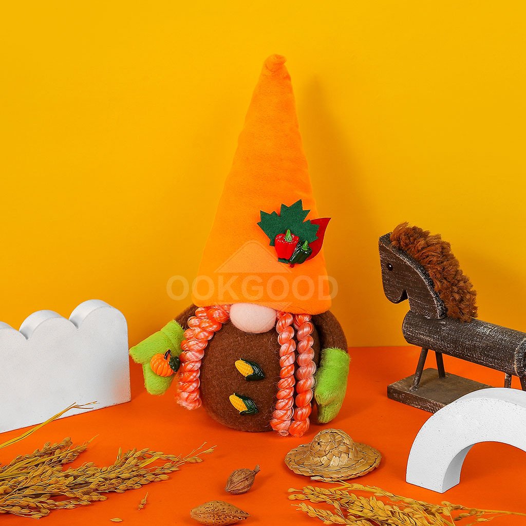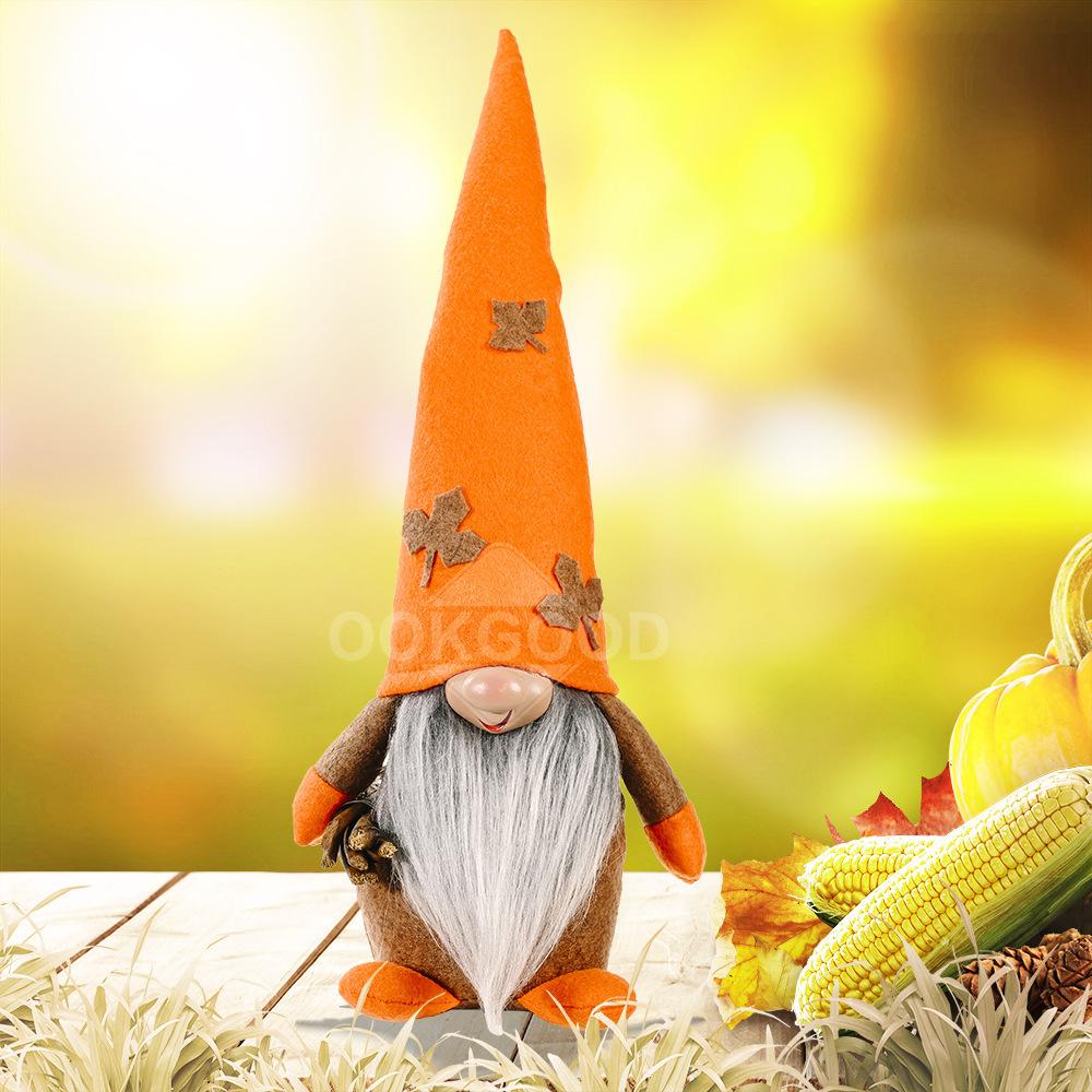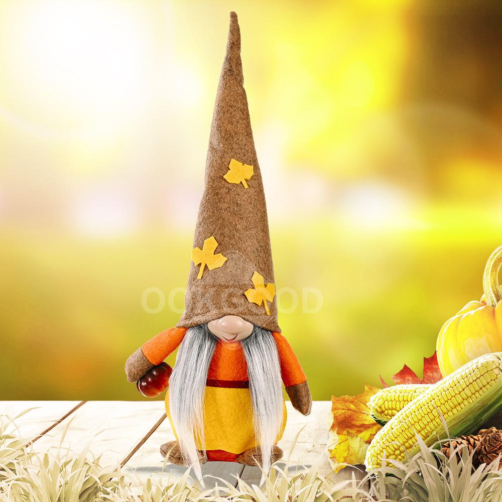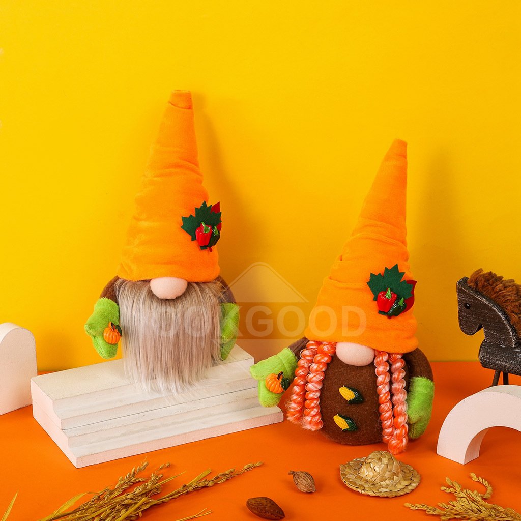 Plush Gnome Couple With Maple Leaf Hat For Thanksgiving Day Gift