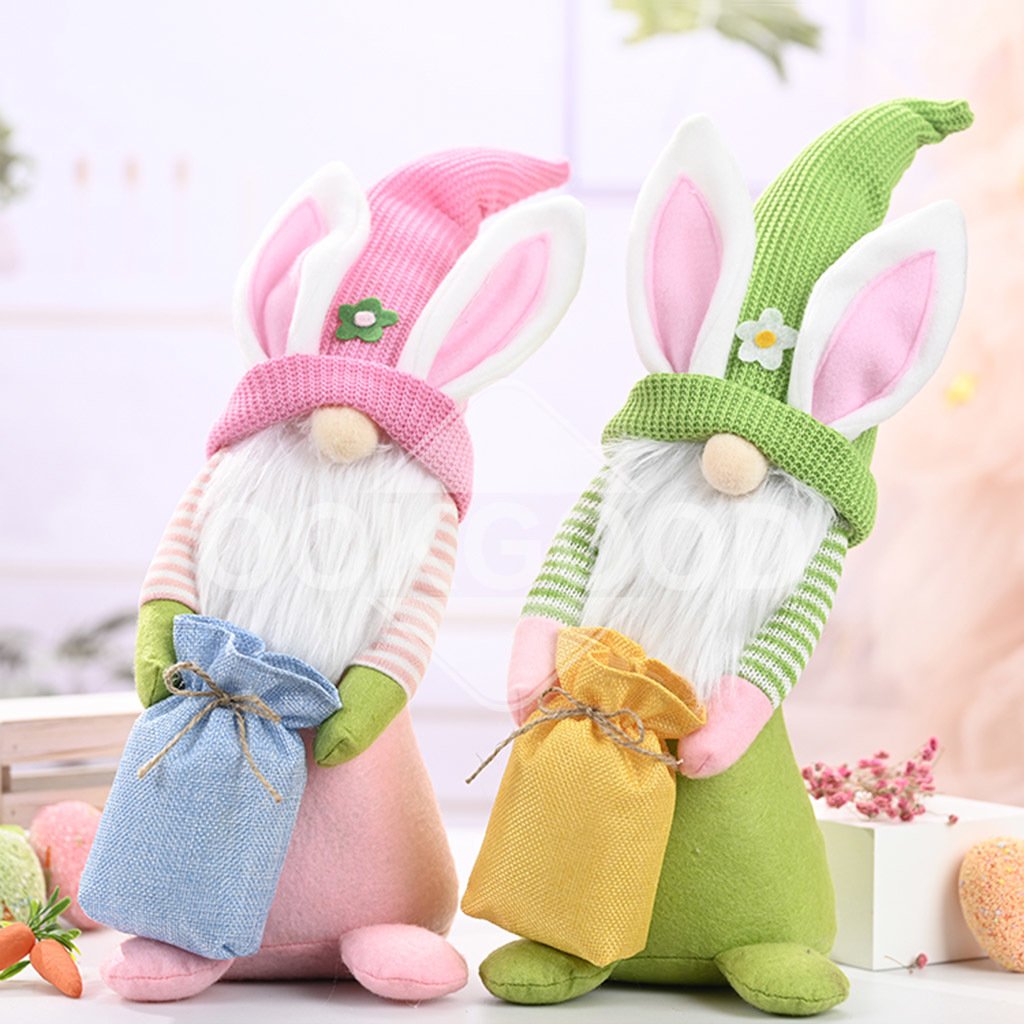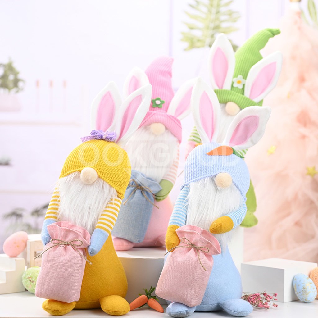 Plush Bunny Gnome With Gift Bag For Easter Gift And Decoration