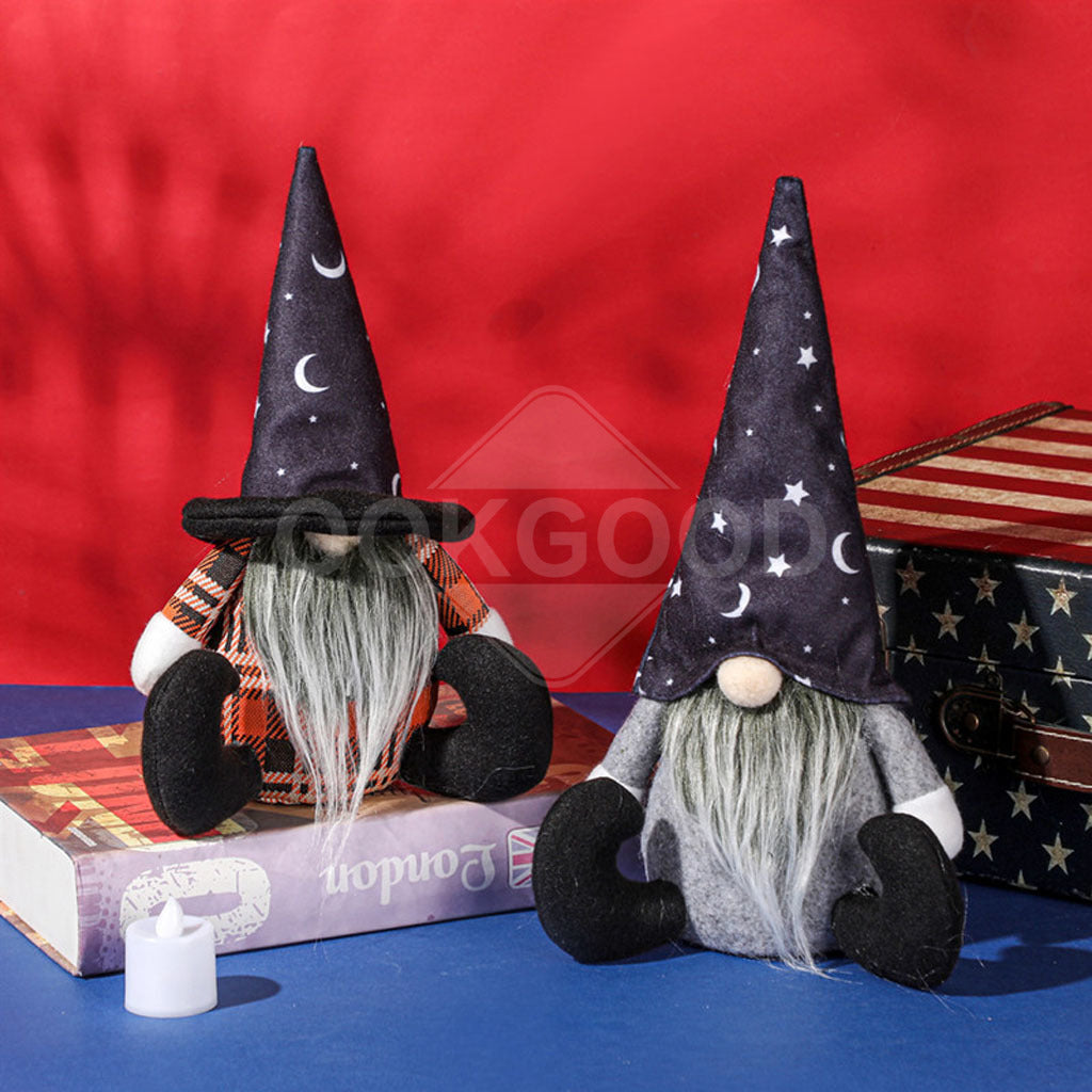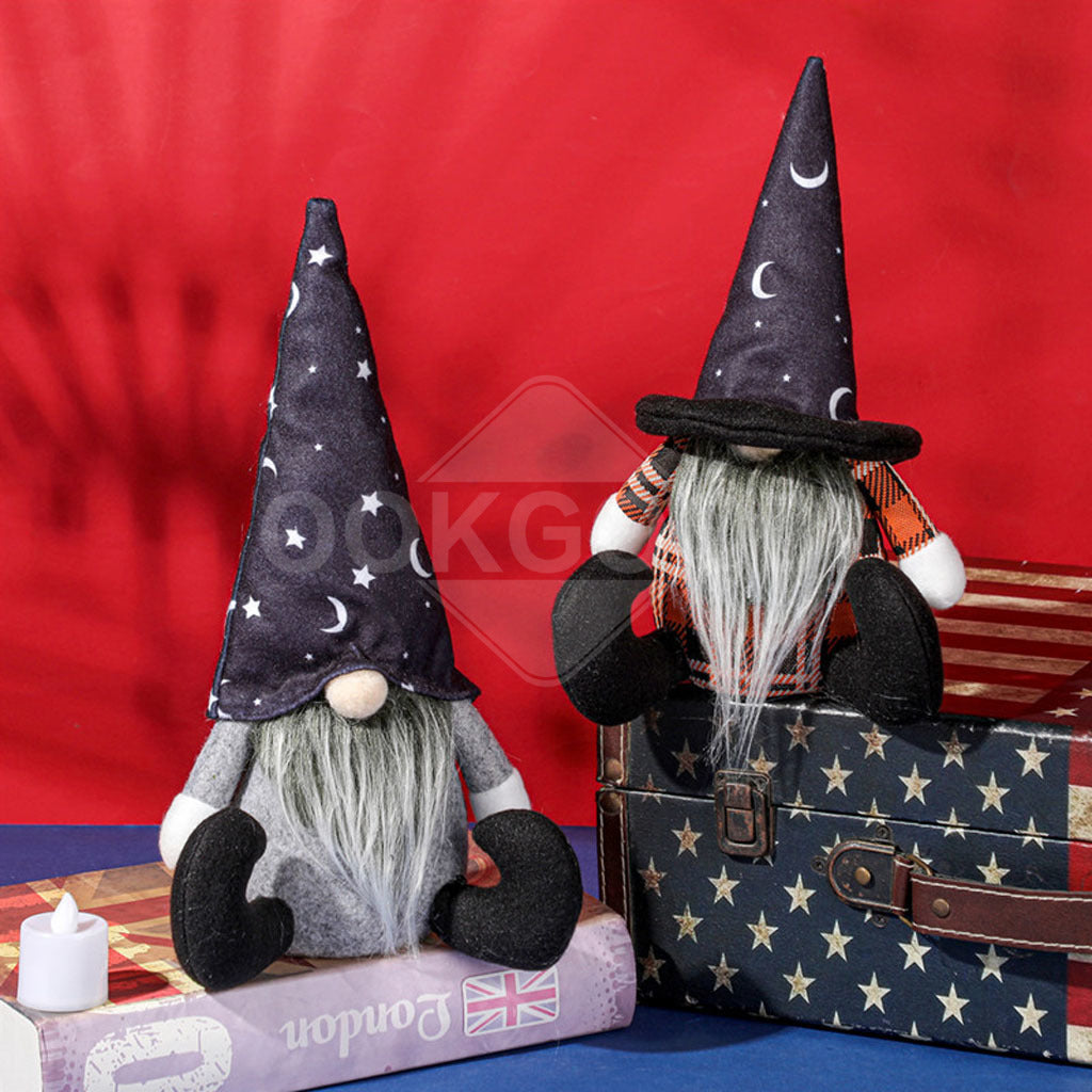 Handmade Gnome Doll With Black Hat For Halloween Decoration