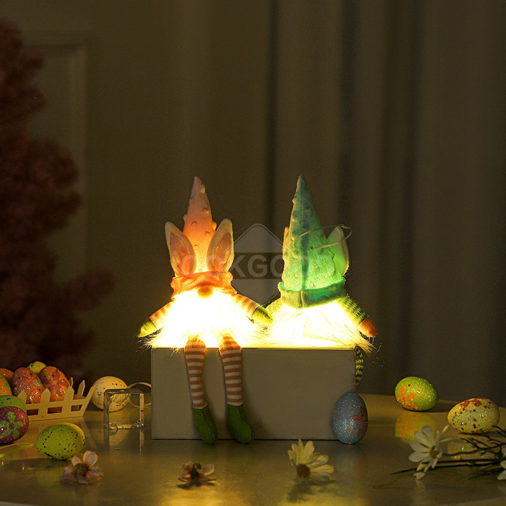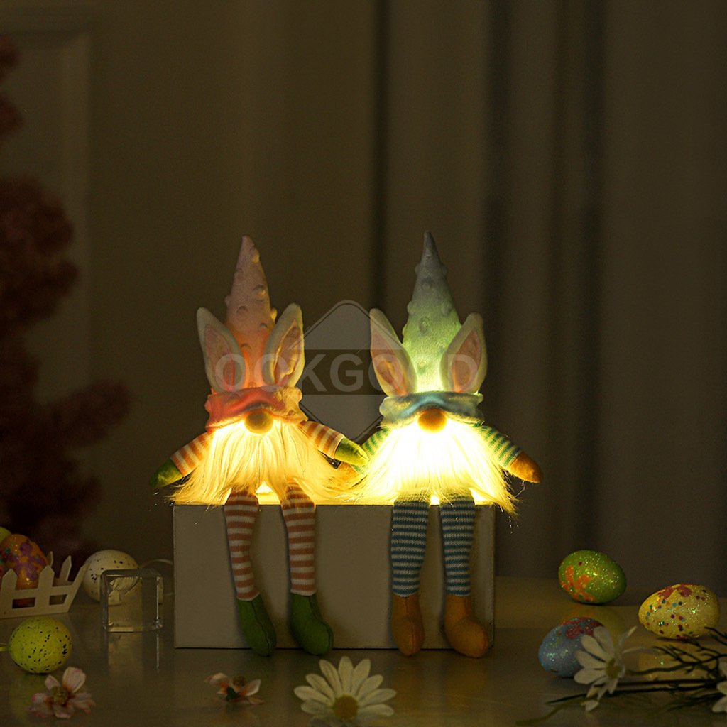 Plush Bunny Gnome Doll With Warm Light For Easter Gift