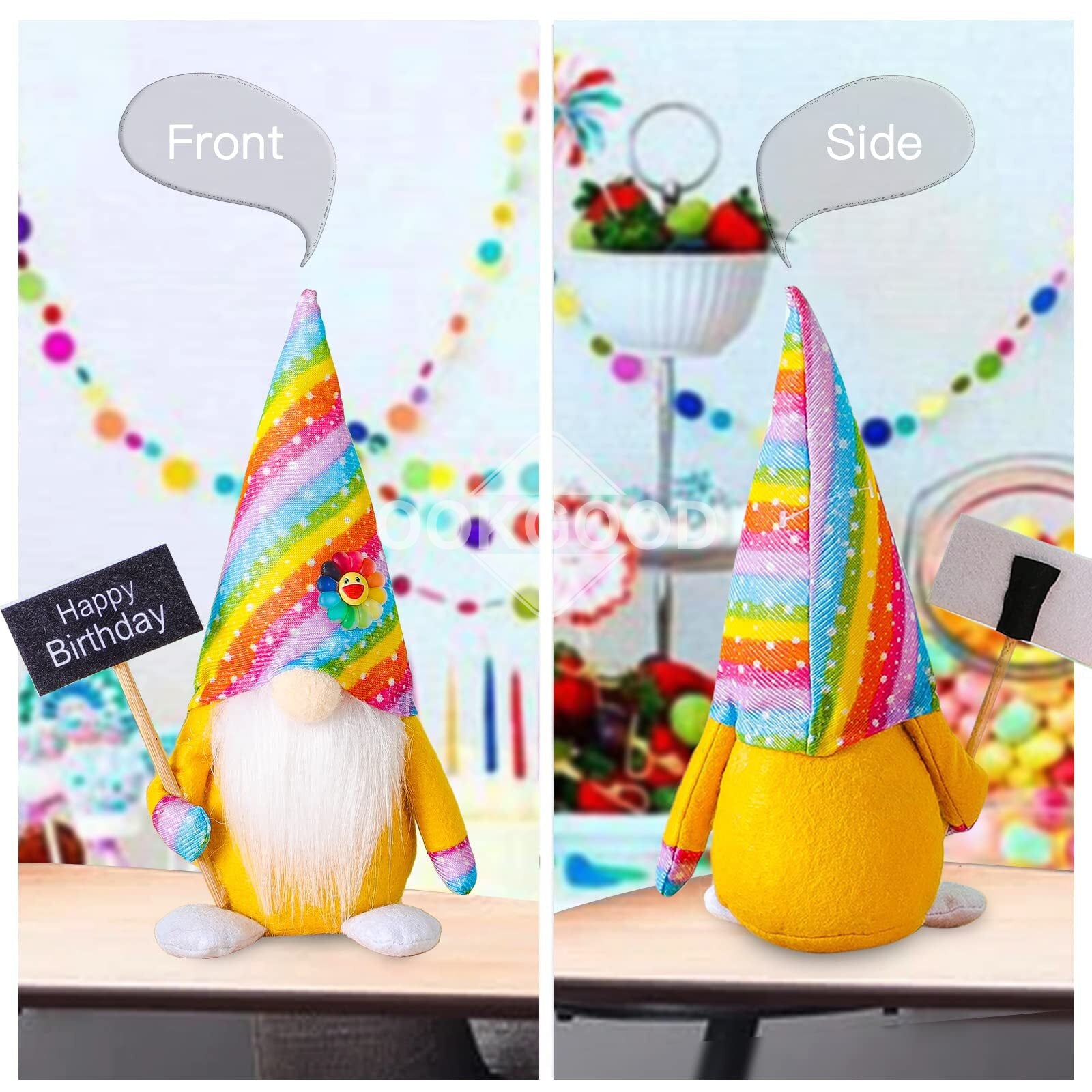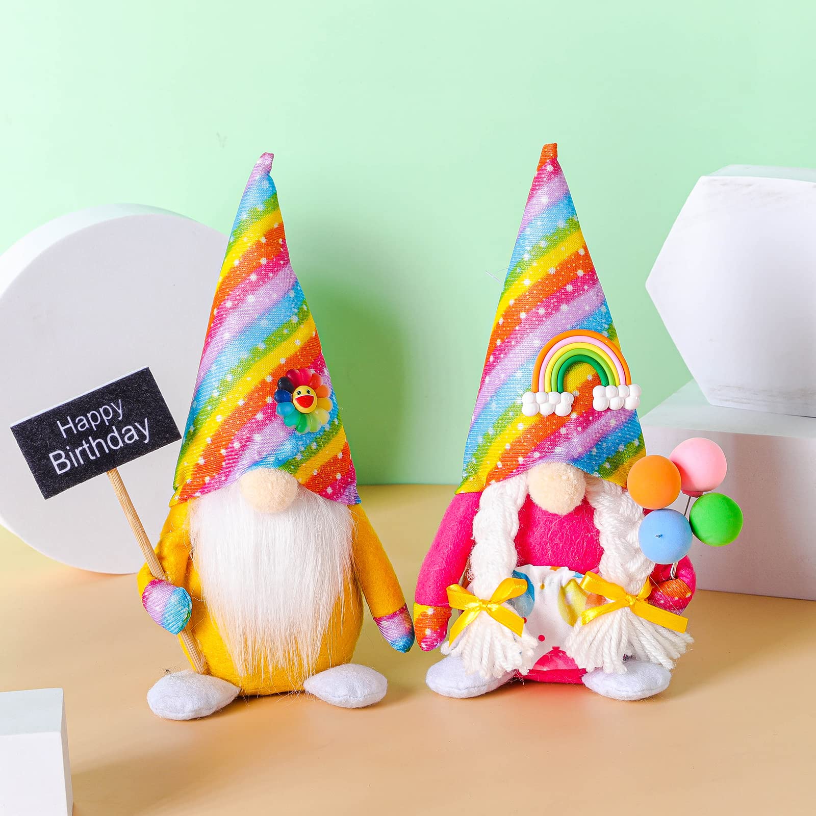 Happy Birthday - Lovely Rainbow Hat Gnome Couple