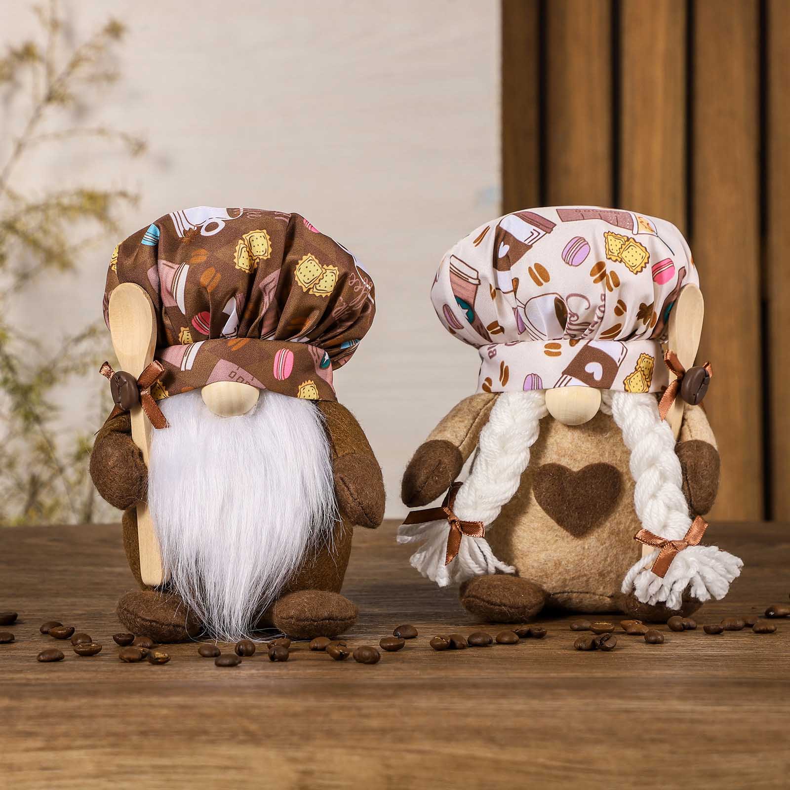 Chef Gnome Couple Wearing Coffee Patterned Hat