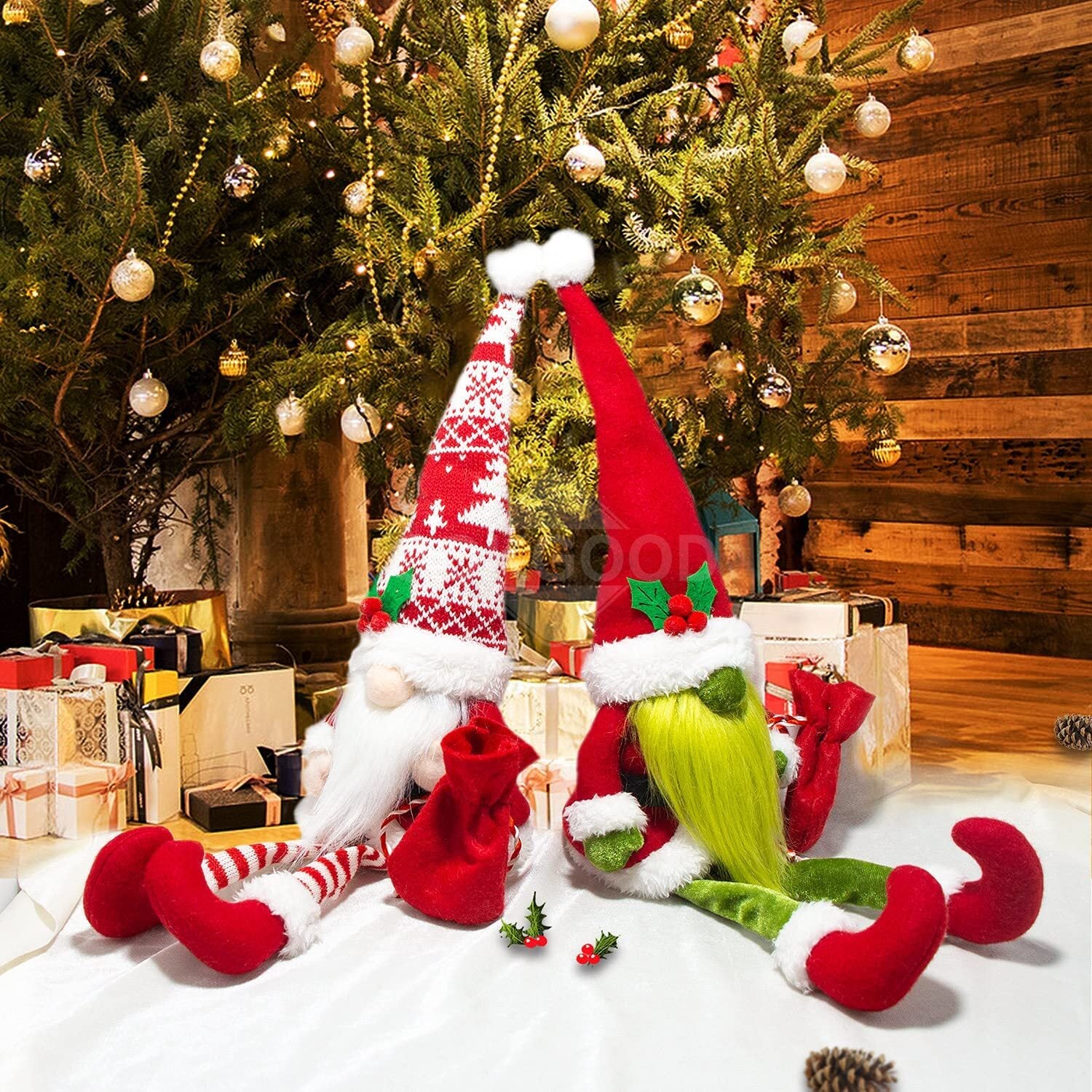 Long-legged Christmas Gnome Elf With Gift Bag