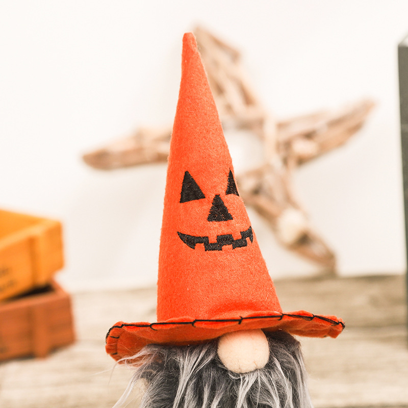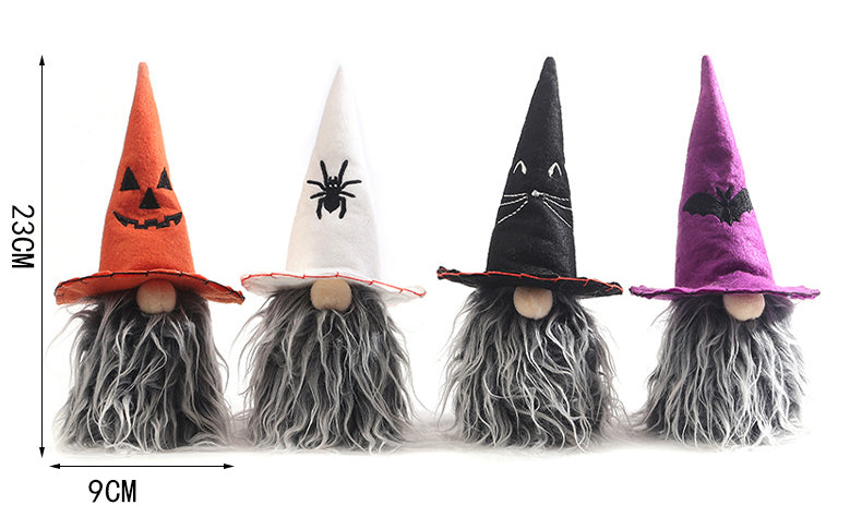 Halloween deco Standing Bushy beard gnomes with classic element on hat