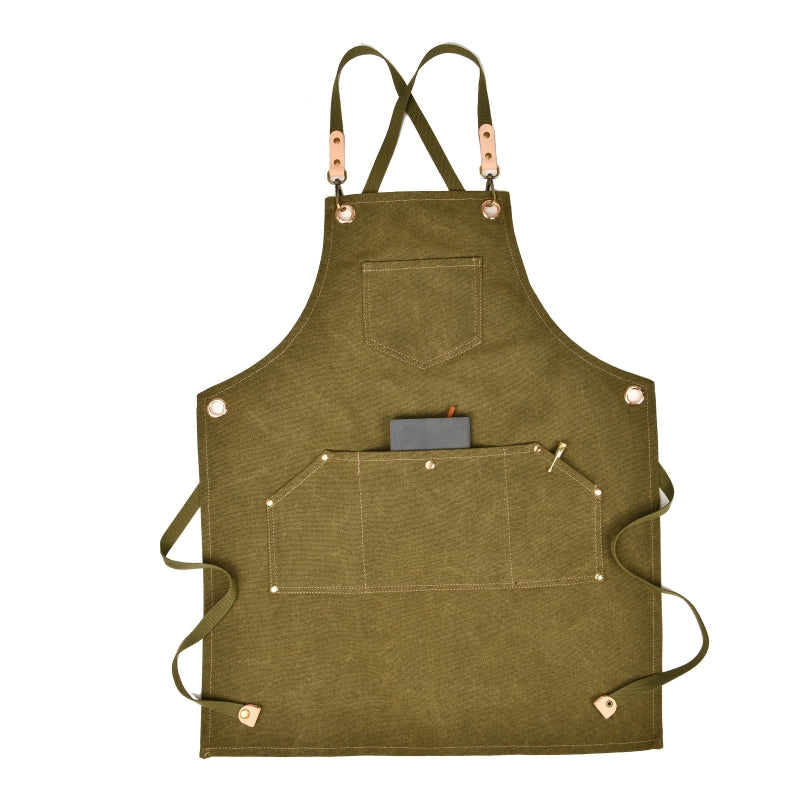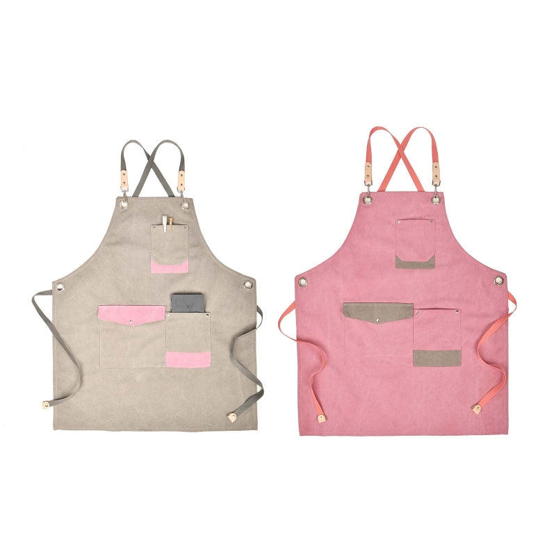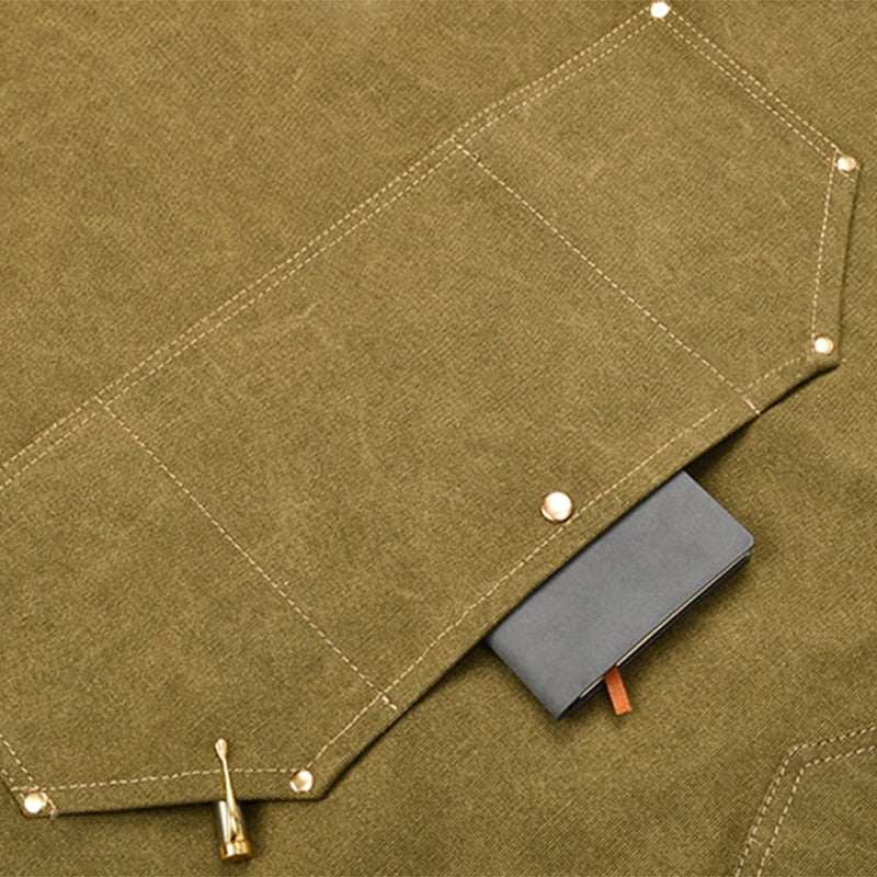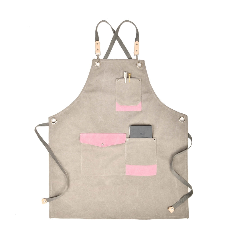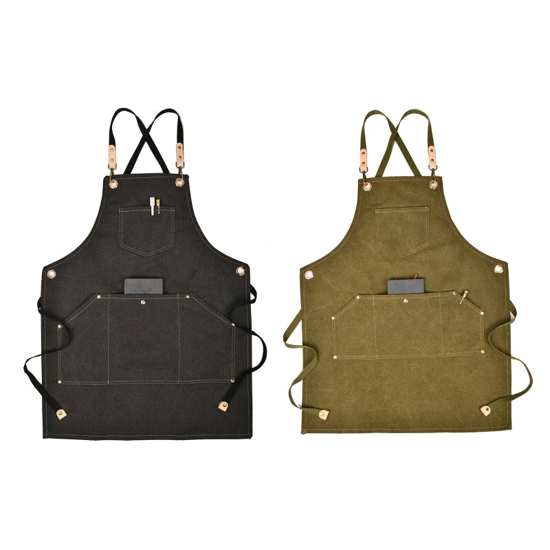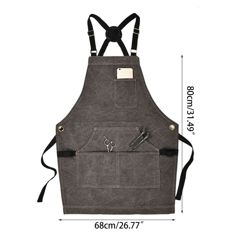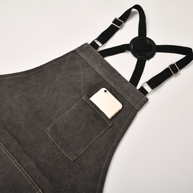 Waterproof Adjustable Cross Back Canvas Apron With Pockets