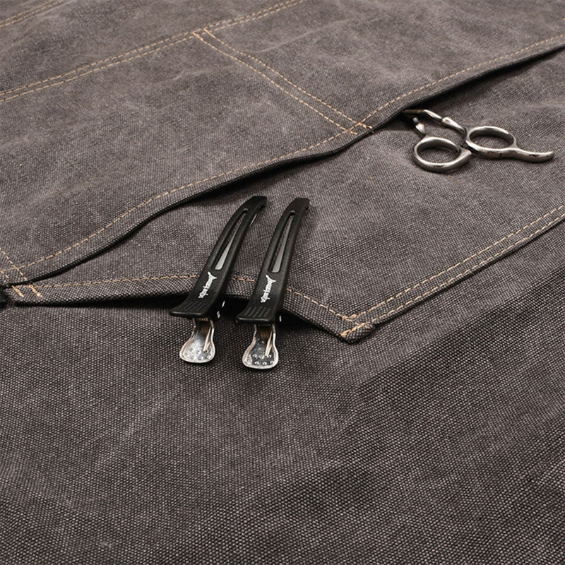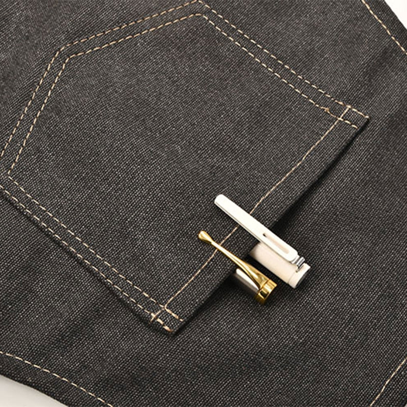 Canvas Apron With Contrast Color Multi Pockets For Coffee Bartender