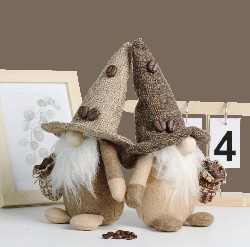 Fabric Coffee Gnomes with Wizard Hat and Coffee Bean