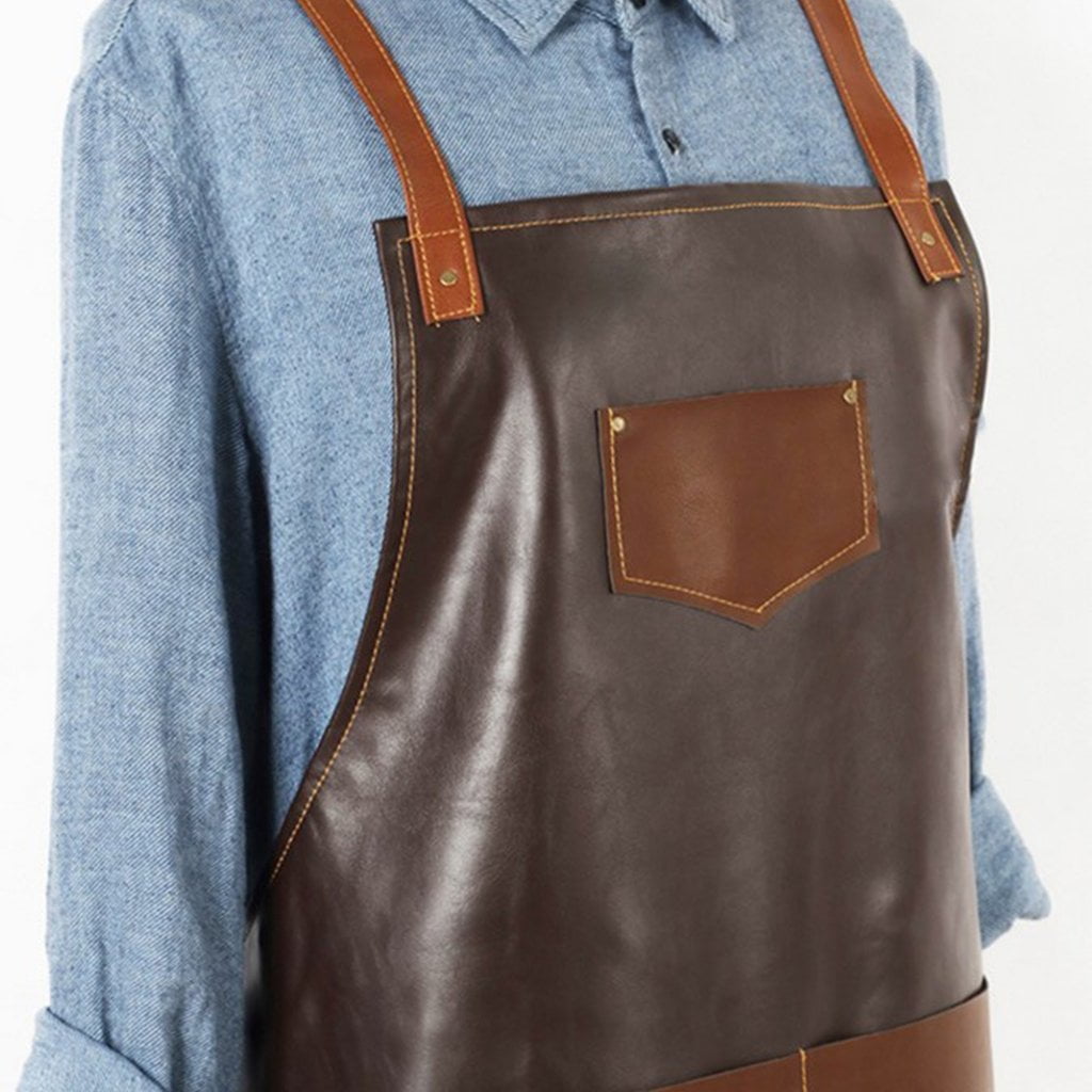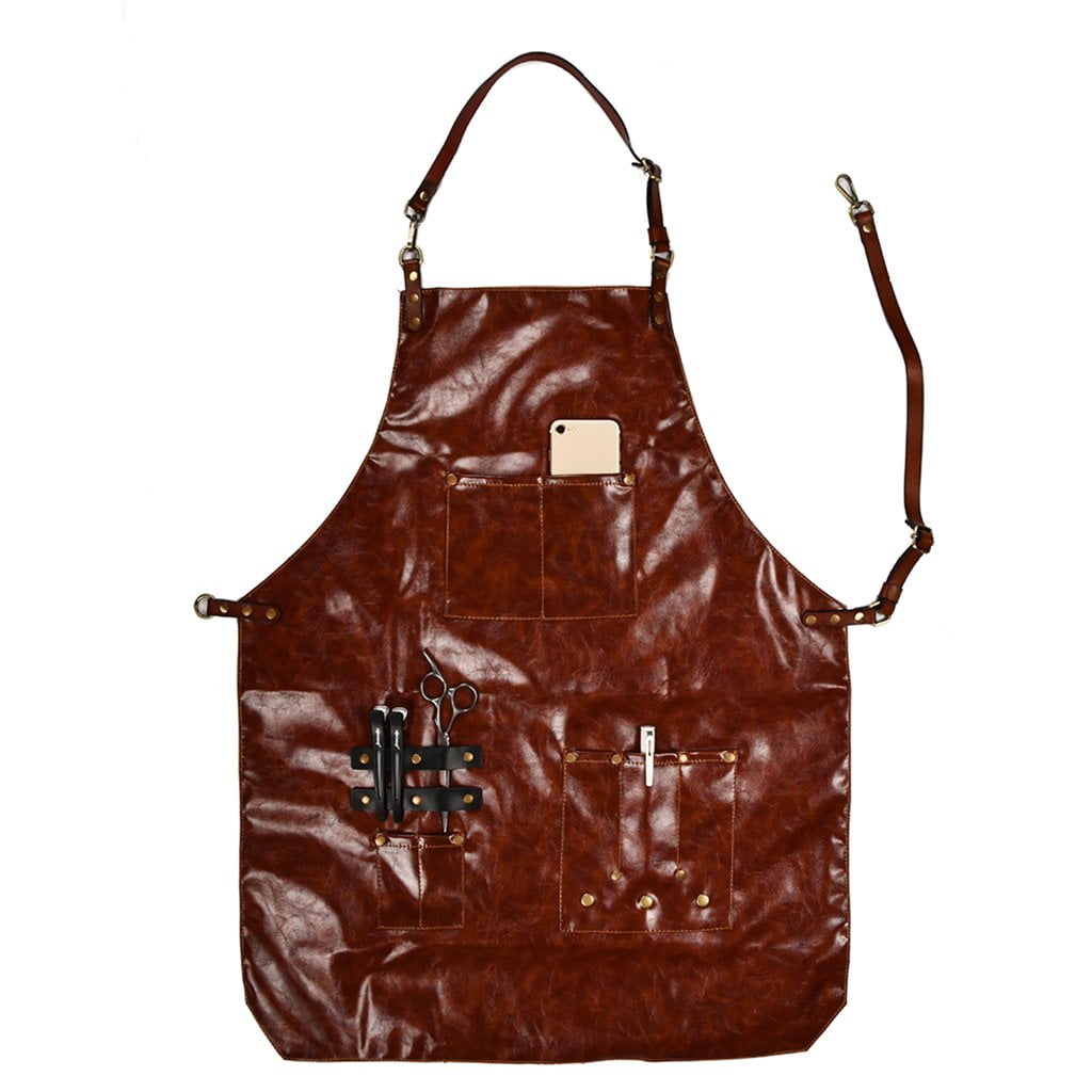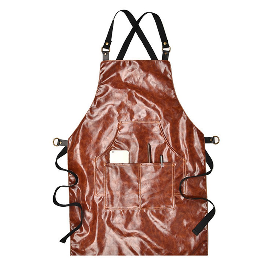 Leather PU Cook Apron Barista Bartender Chef Hairdressing Apron