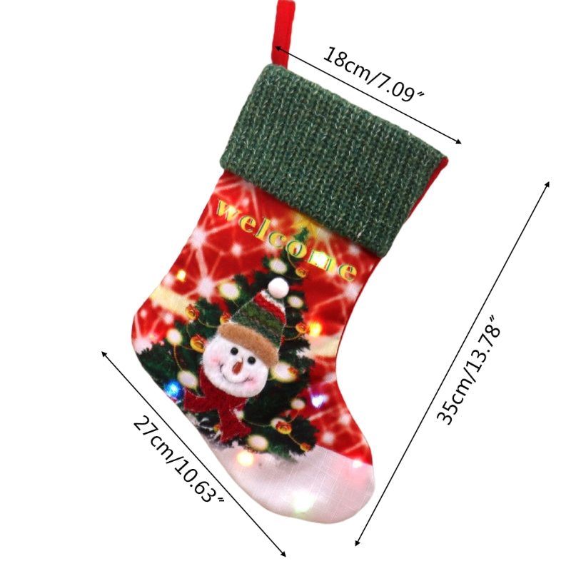 Christmas stocking with LED lights, it will be lighted after installing the battery.