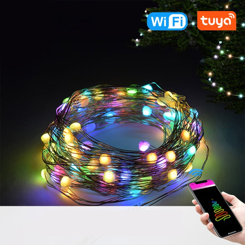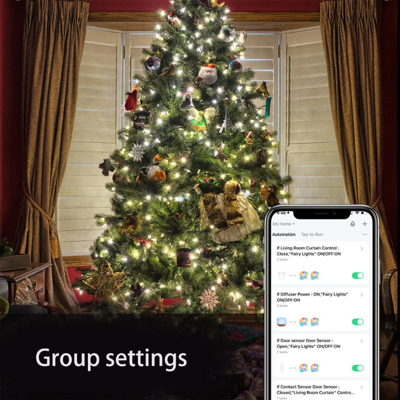 The fairy light string is designed with a push button switch, which can be connected with the Tuya smart phone app or Smartlife by the WIFI and Bluetooth-compatible 5.0 technology. Double ways bring stable link service. With built-in microphone, the light supports for alexa and for google- voice assistant, convenient to control the light in the distance, which can change its light color according to the music as wellz (four music light modes available).