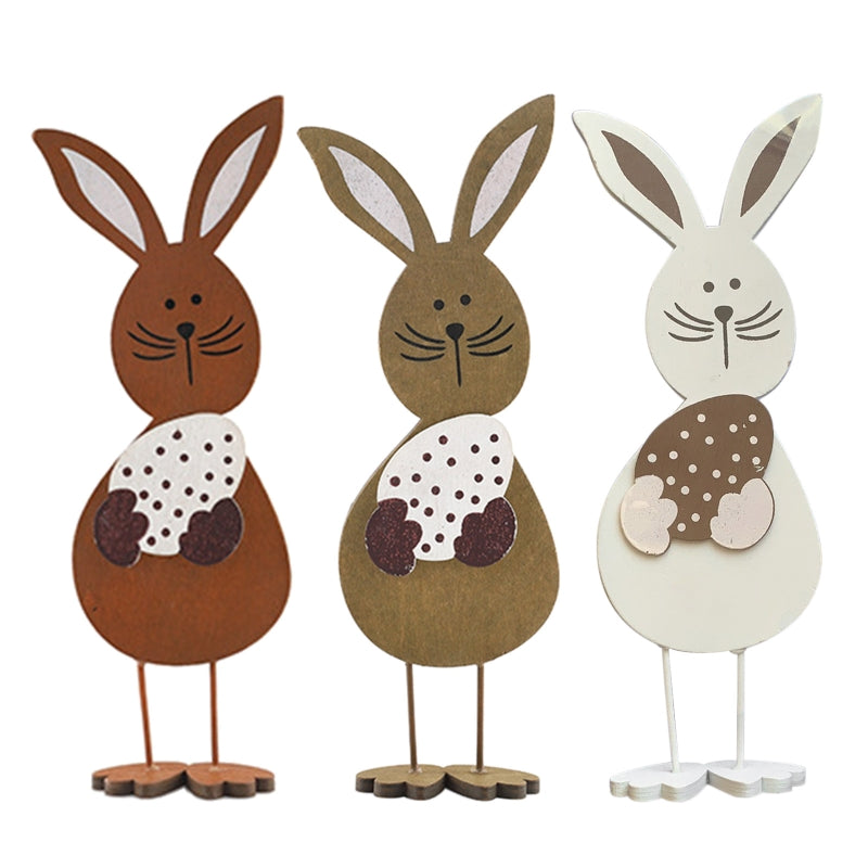 3Pcs Cute Bunny Egg Desktop Decor Easter Wooden Ornament