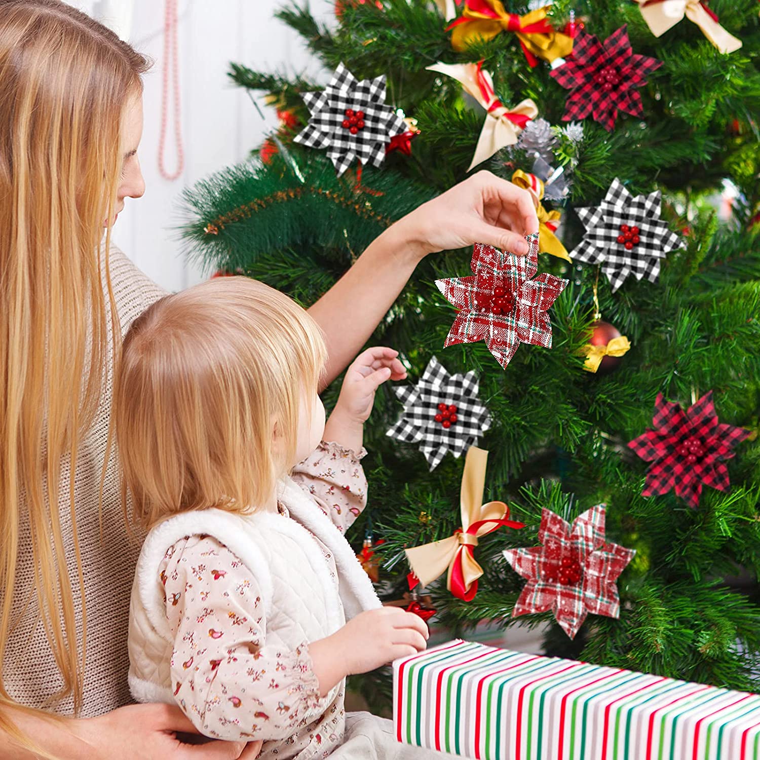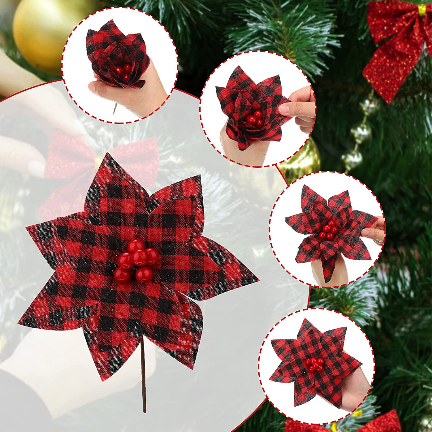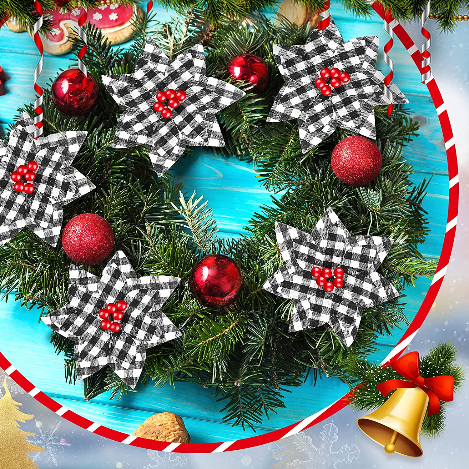 🎄Classic Design: The overlapping petals are designed in the classic plaid style, and are equipped with red berries as the stamens, which can create beautiful and vivid flowers; Simple and elegant, classic and timeless, they are good choices for Christmas decoration.
