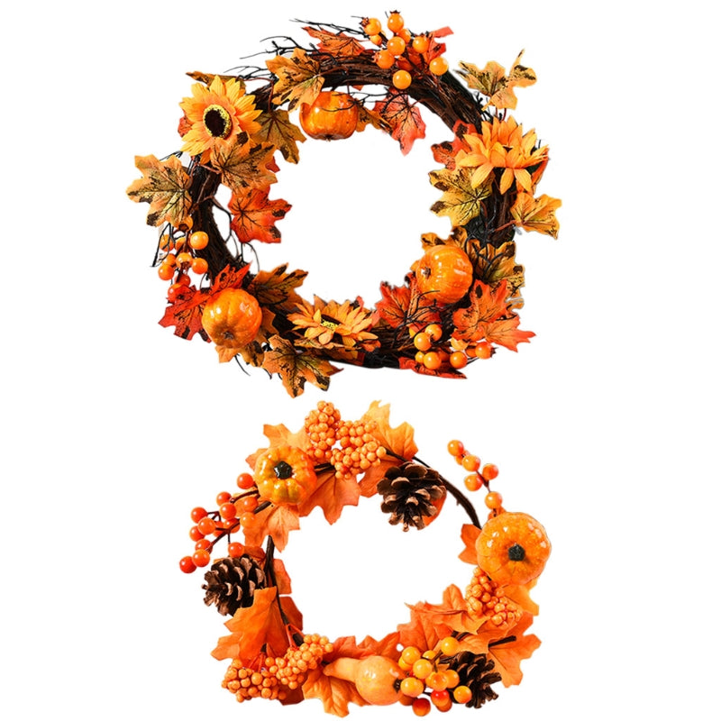 Autumn Thanksgiving Pumpkin Maple Leaf Wreath Home Decoration