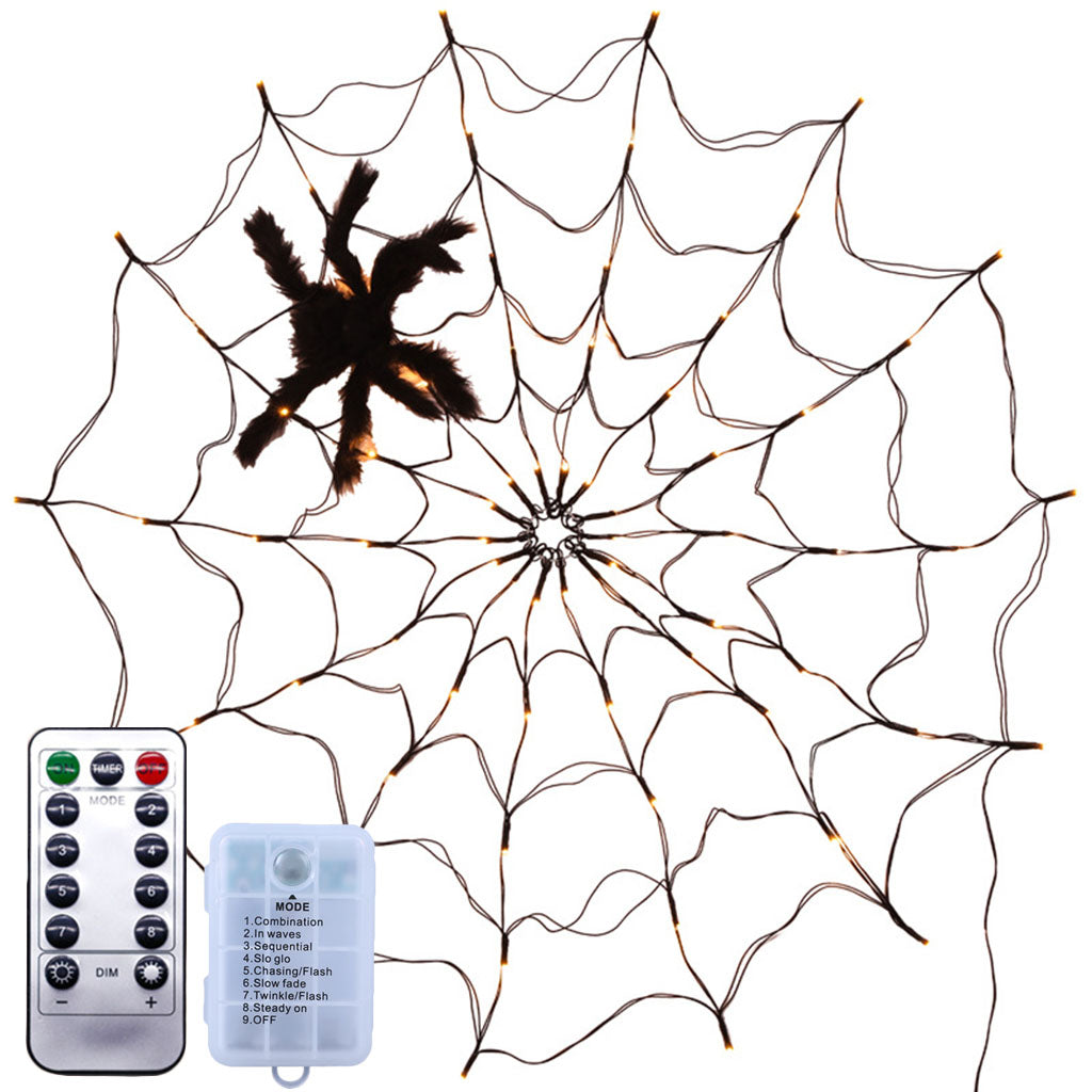 Black Spider Web With 8 Light Modes For Halloween Decoration
