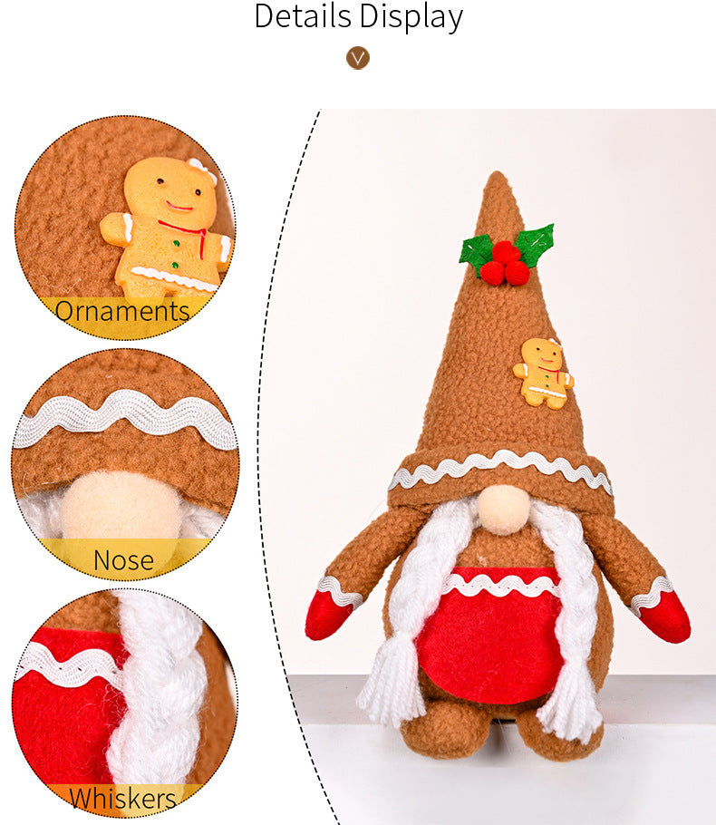 Christmas Khaki Gingerbread Gnomes with Knitted Pointed Hat