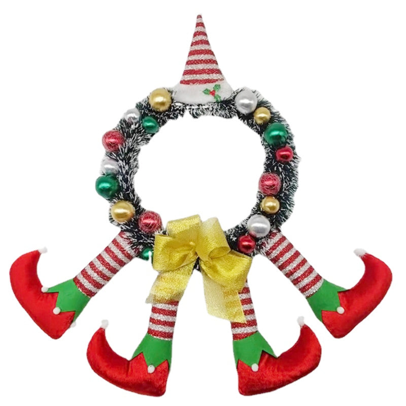 Christmas Striped Clown Elf Legs Wreath With Hat Hanging Door Decor