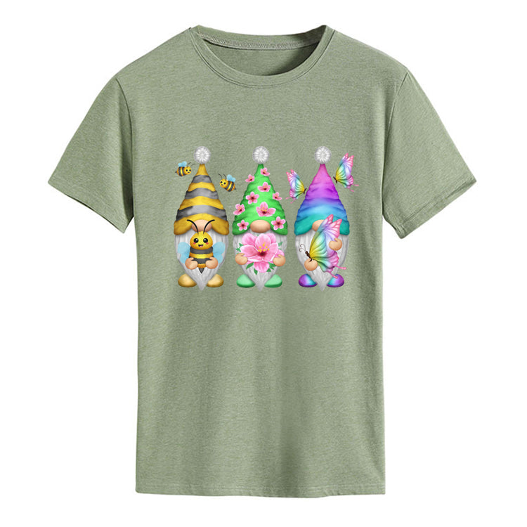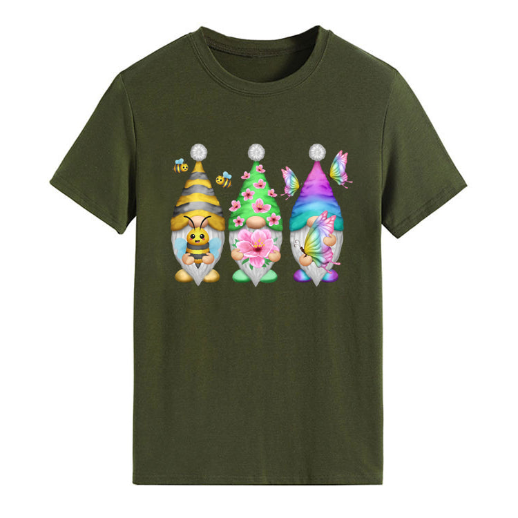 Colorful Gnome With Bee And Butterfly - Spring Summer Unisex T-shirt