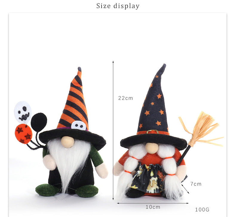 Halloween Cartoon Gnome Couple hold besom and scary face