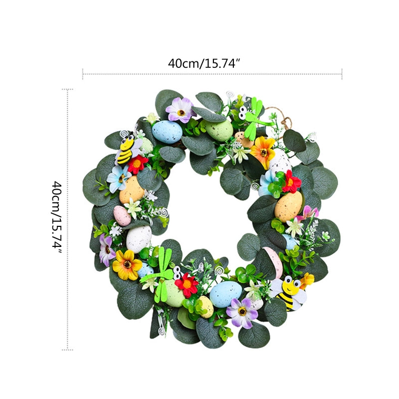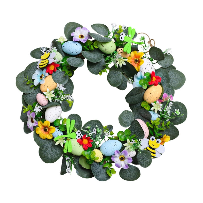 Exquisite Easter style design with eucalyptus, decorated with eggs, litter bee and flowers, fresh colors bring vitality to your life.