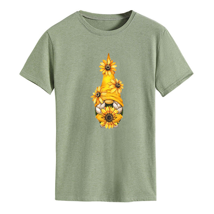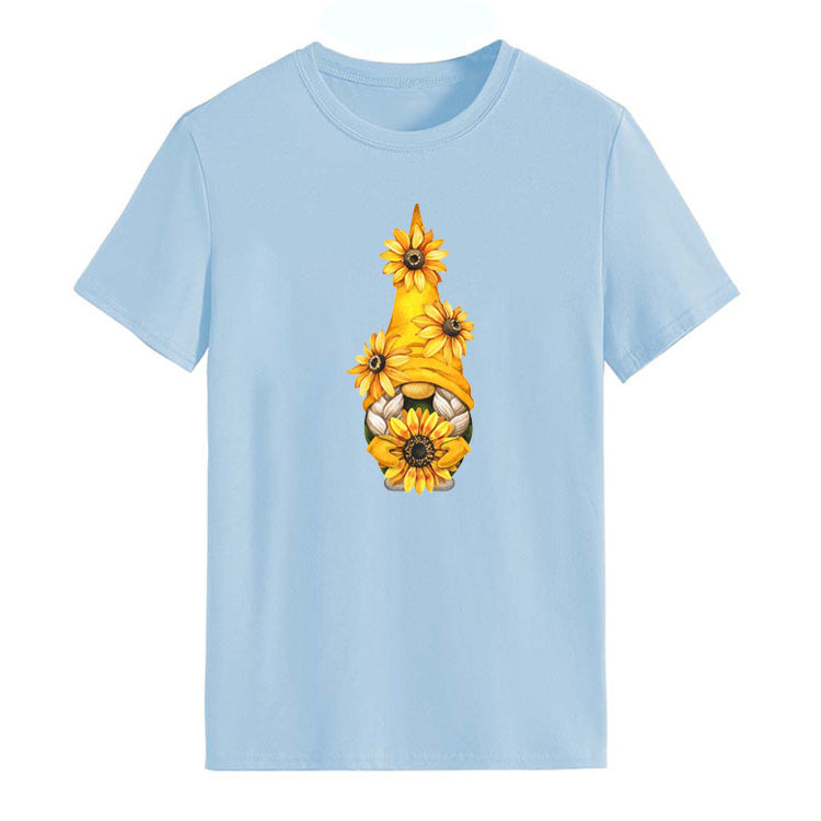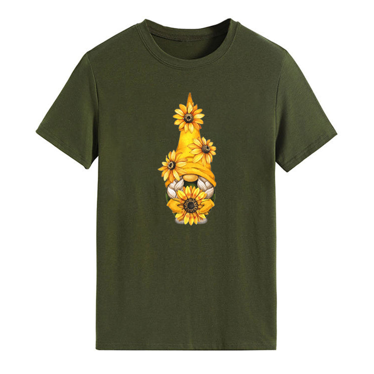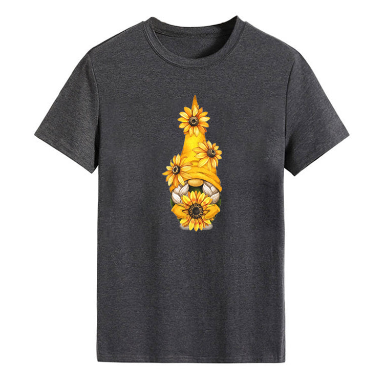 Gnome Girl Holding Sunflower - Spring Summer Unisex T-shirt