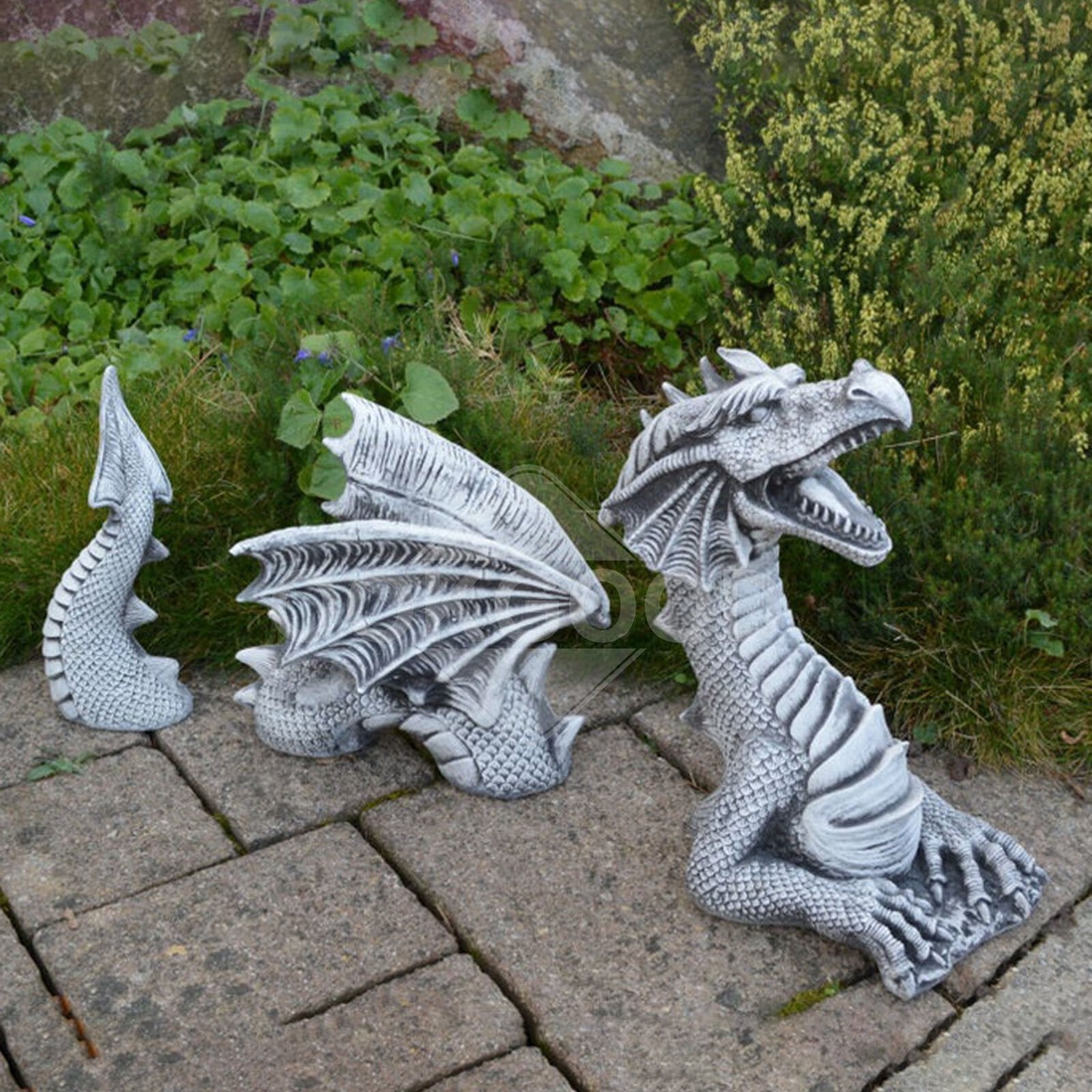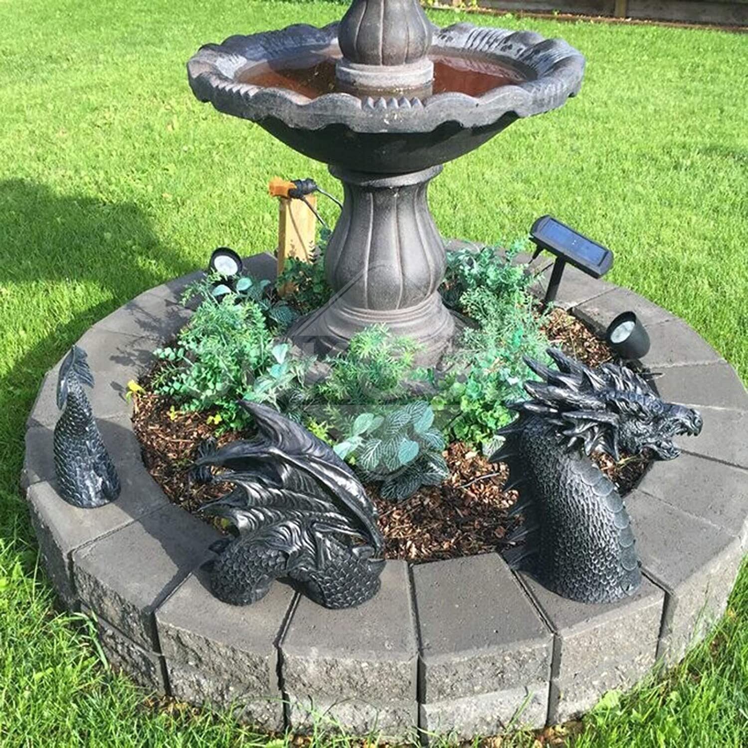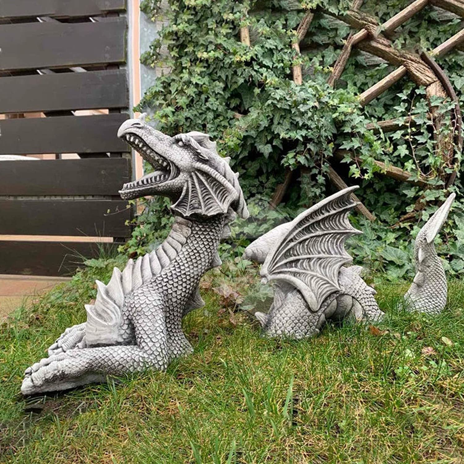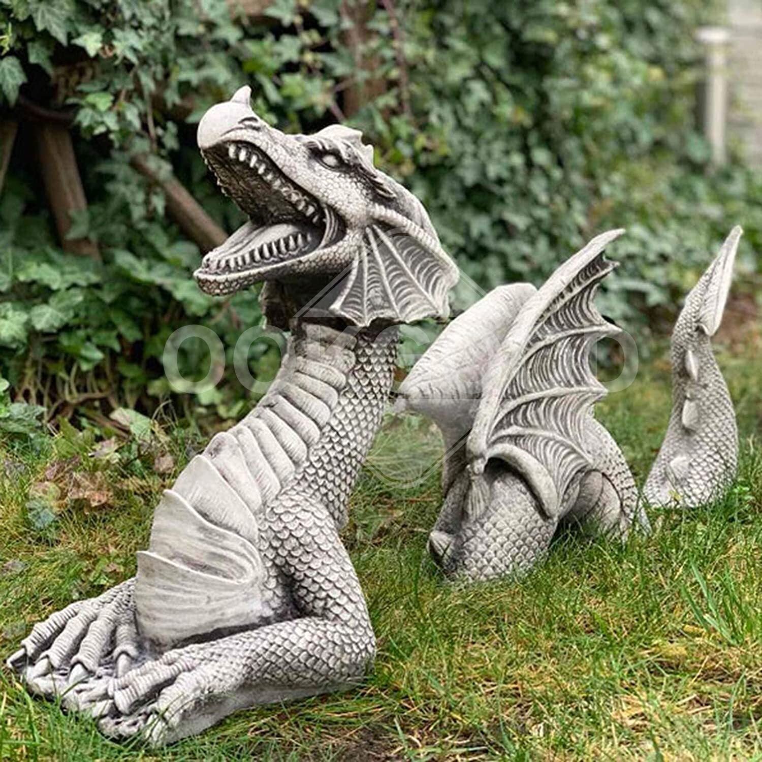 🐉Hand Crafted- They are made of resin. True Gothic garden art, this almost life-like dragon sculpture is complete with scales, wings, and a treacherous tail.