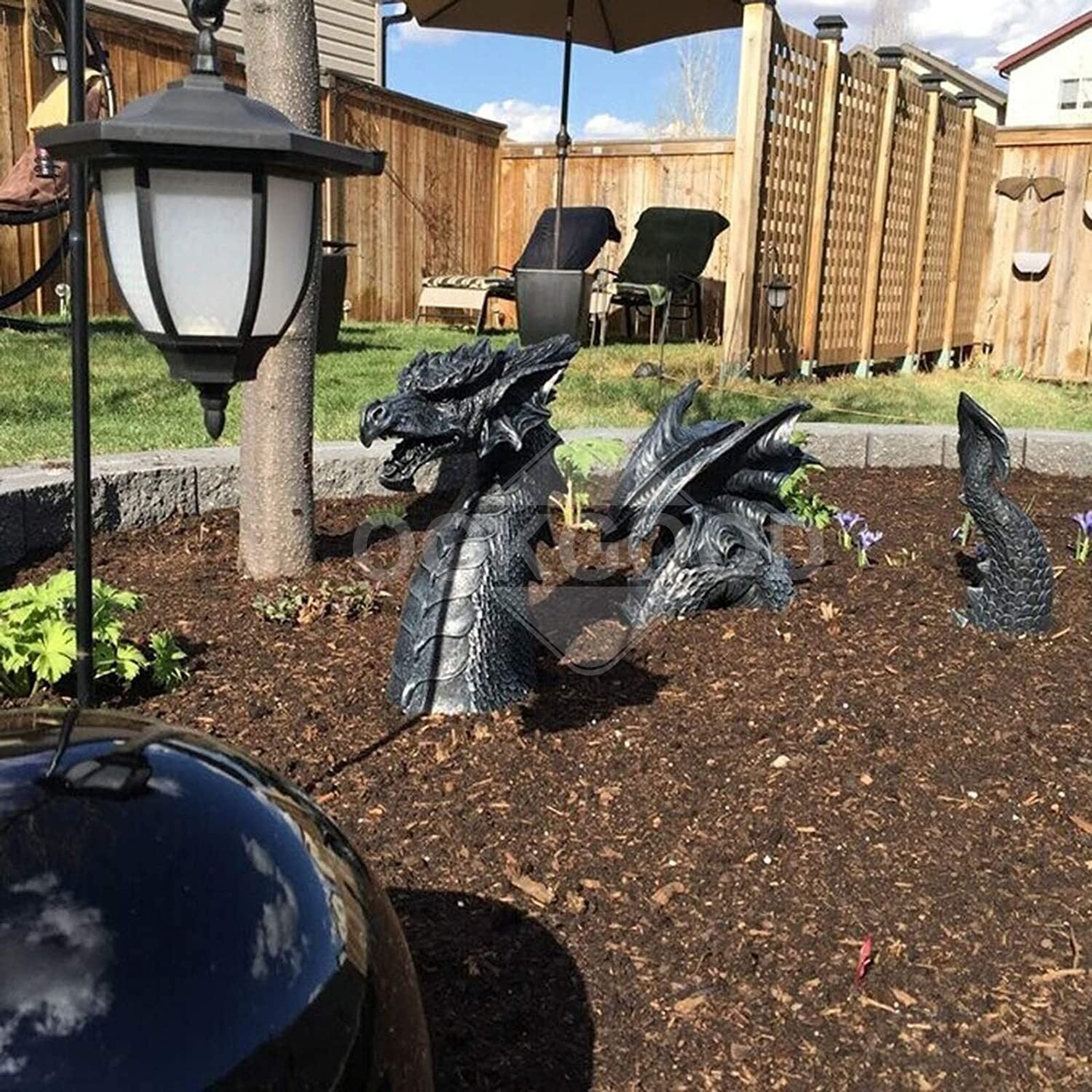 🐉Life-like Dragon- You'll love this cool dragone sculpture crafted in 3 pieces, huge head, large winged body and evil spiked tail, to make it appear to swim through your flower beds.