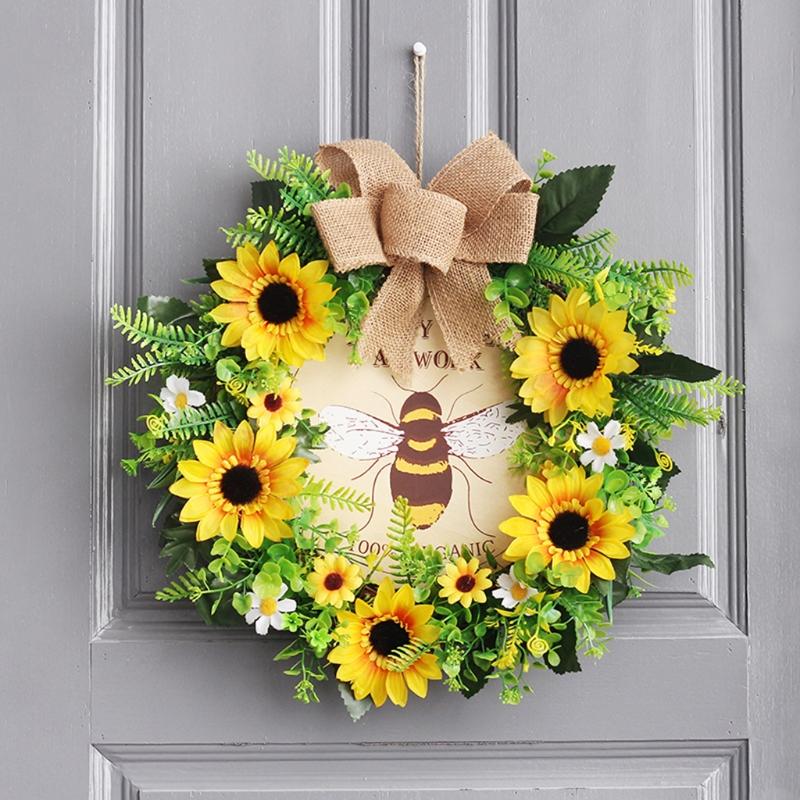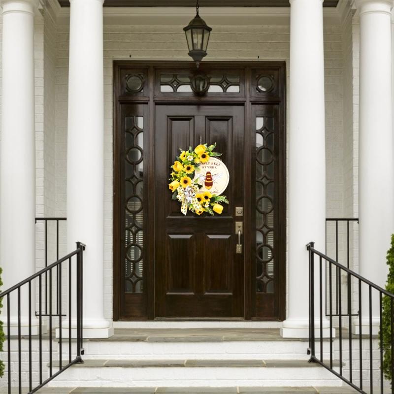 Decorated with sunflower and bee, perfect on your front door or anywhere inside your home.