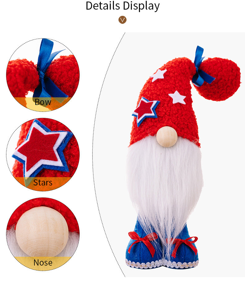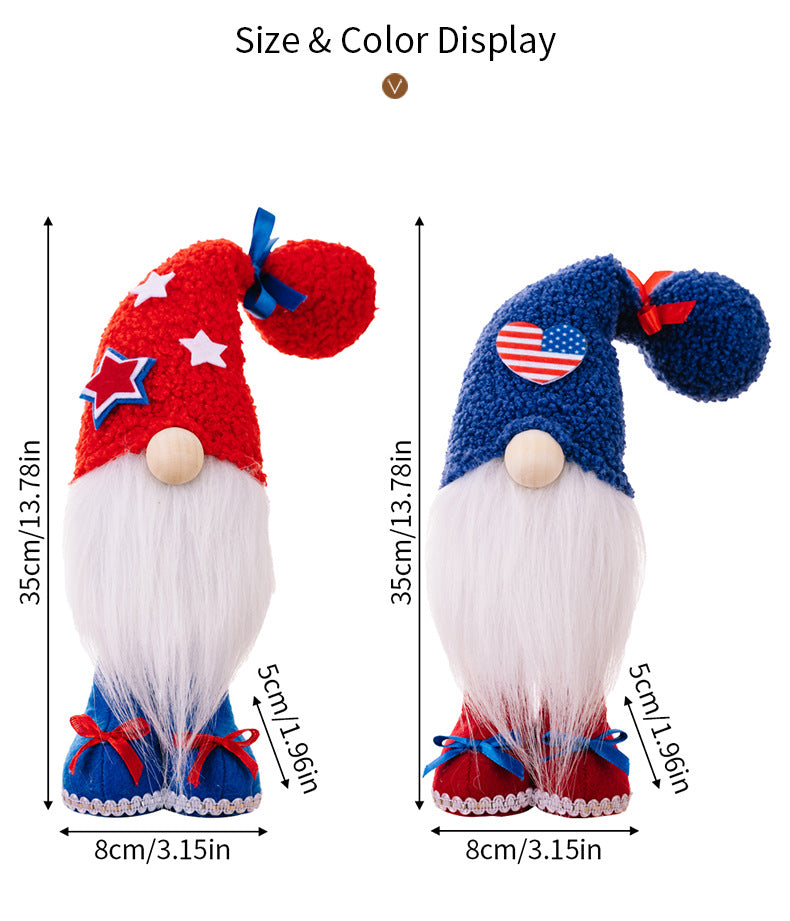 Independence Day standing gnomes with big plush doll hat