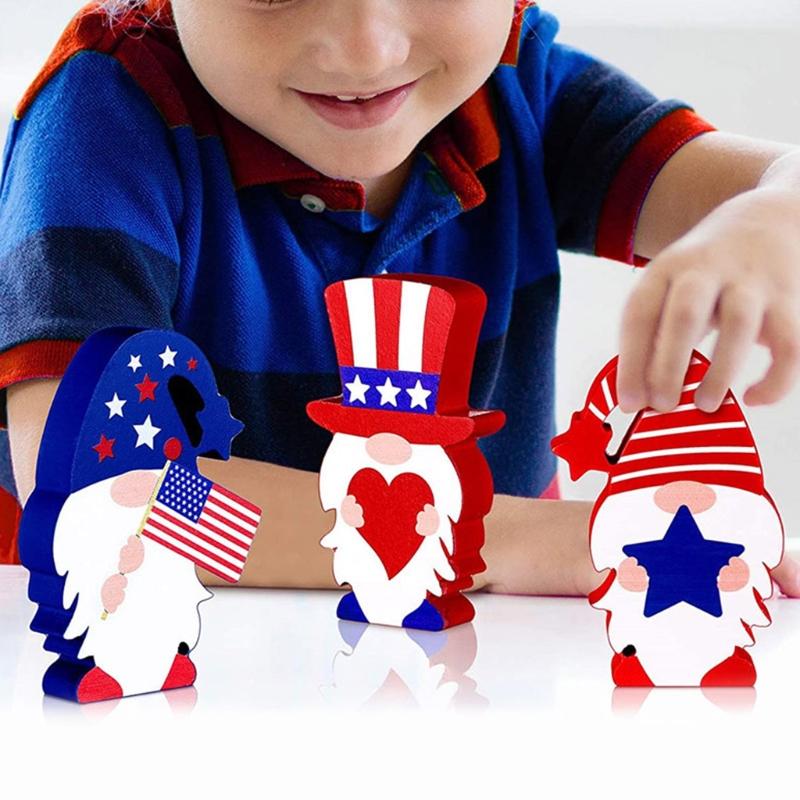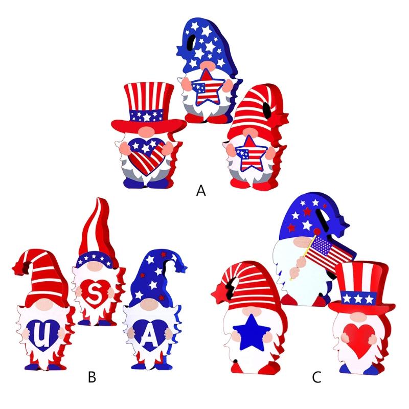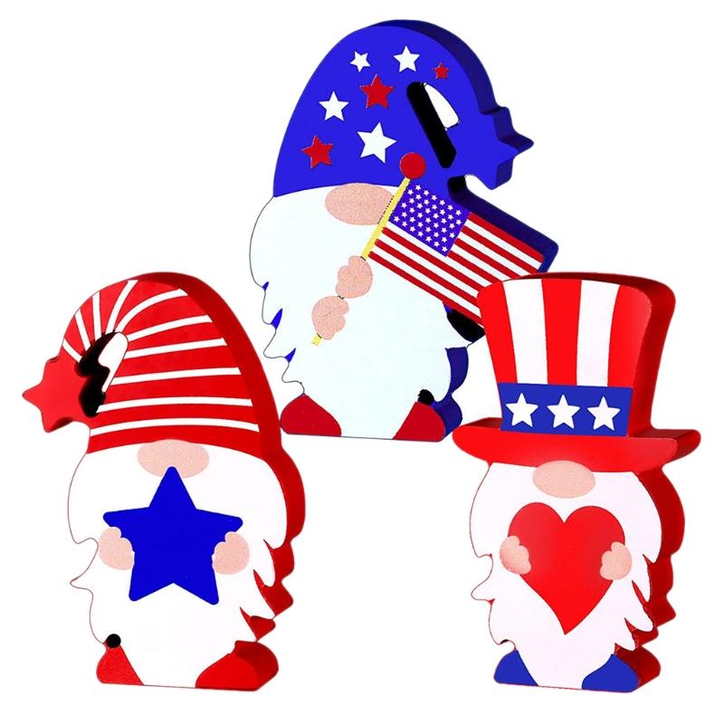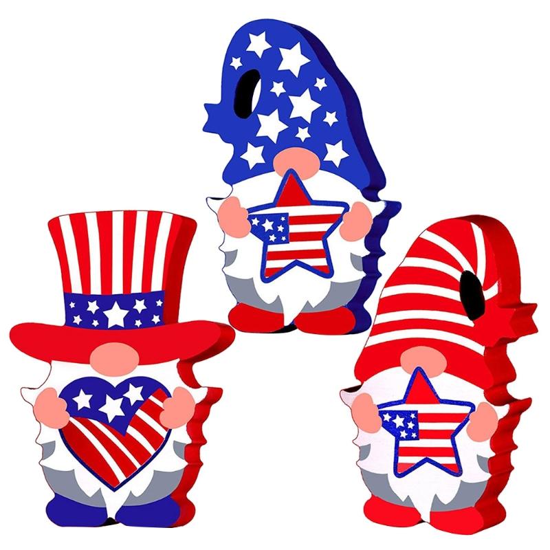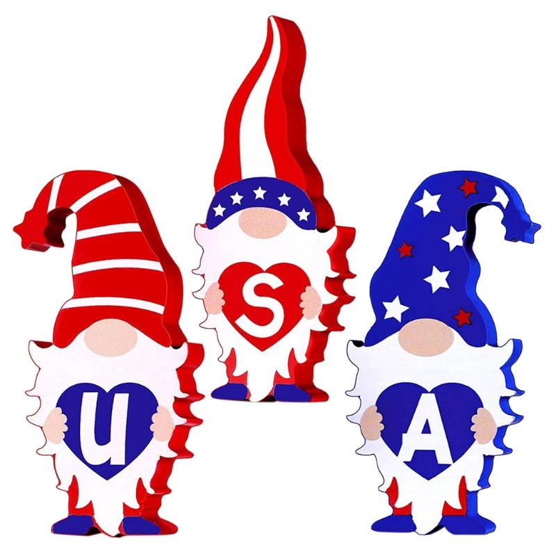 3 pieces patriotic gnome wooden ornaments in 3 different styles.