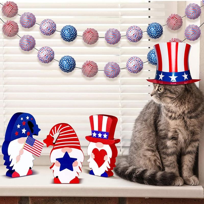 3pcs/set x Patriotic Gnome Wooden Signs (other accessories demo in the picture is not included!)