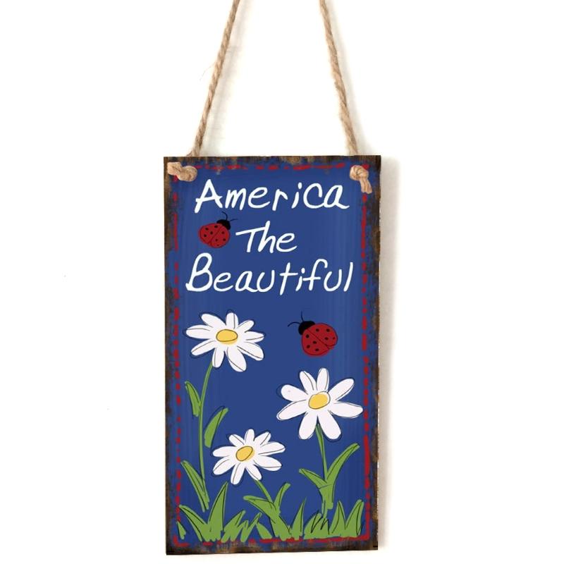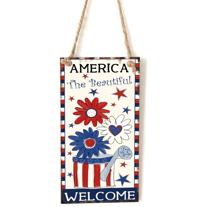 Patriotic Wooden Plaque Sign Adornment Crafts For Independence Day Decoration