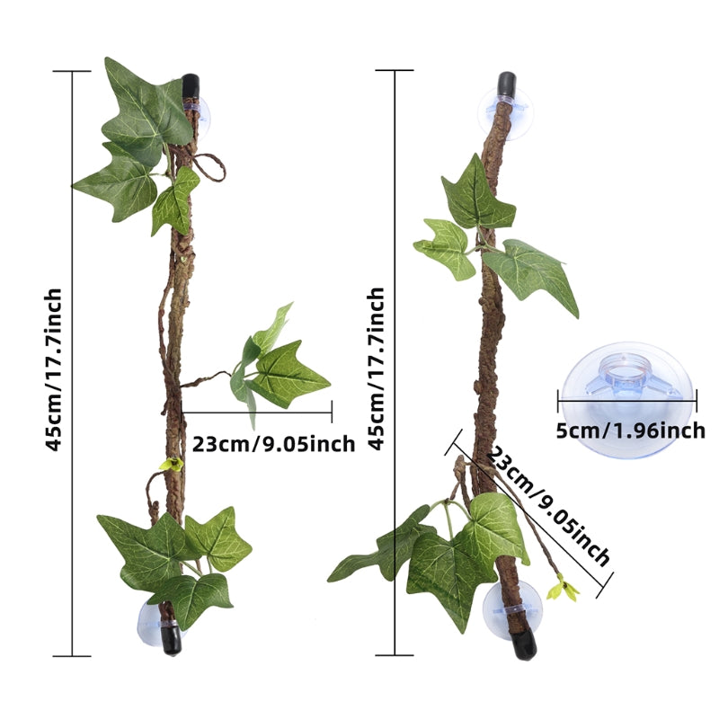 Tree branch size: 17.7inch/45cm in length, each value package includes 2 pieces reptile tree branch decoration.