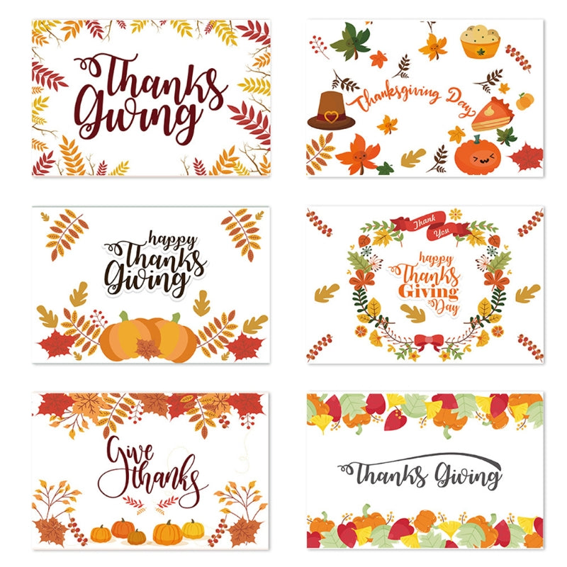 This package includes 6pcs Thanksgiving cards, 6pcs envelopes and 6pcs stickers. hold the funny cards in the envelopes with beautiful stickers attached, and then send them to the people who you are thankful for.