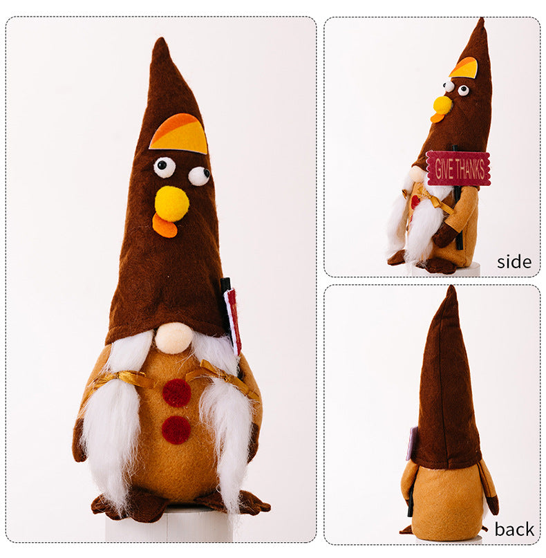 Thanksgiving Funny Turkey Gnomes Holding Thanks